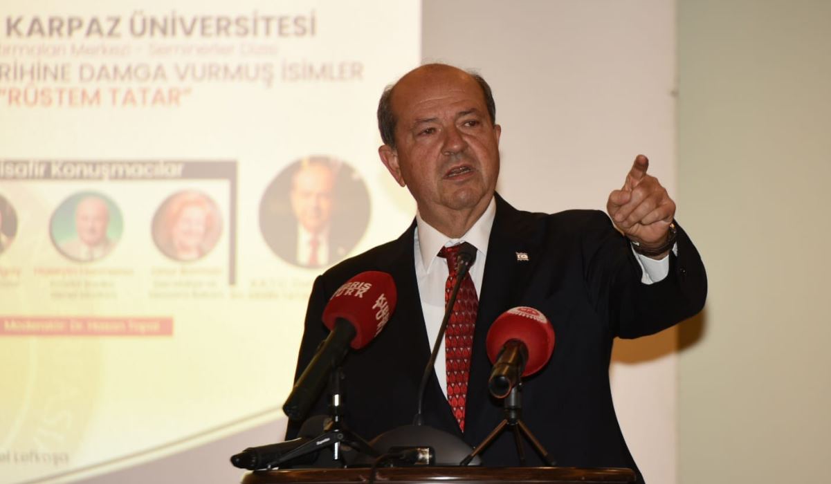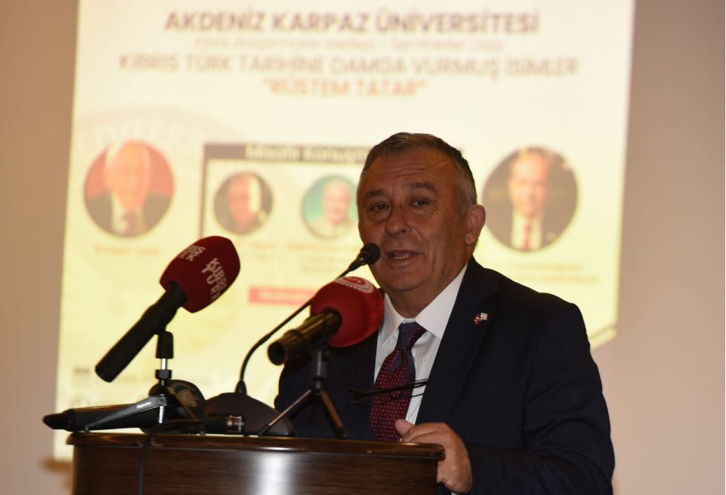 Lefkoşa, 25 Ekim 24 (TAK): Akdeniz Karpaz Üniversitesi (AKÜN) Kıbrıs Araştırmaları Merkezi tarafından düzenlenen “Kıbrıs Türk Tarihine Damga Vurmuş İsimler” etkinlik dizisi kapsamında bugün “Rüstem Tatar” başlıklı seminer yapıldı.