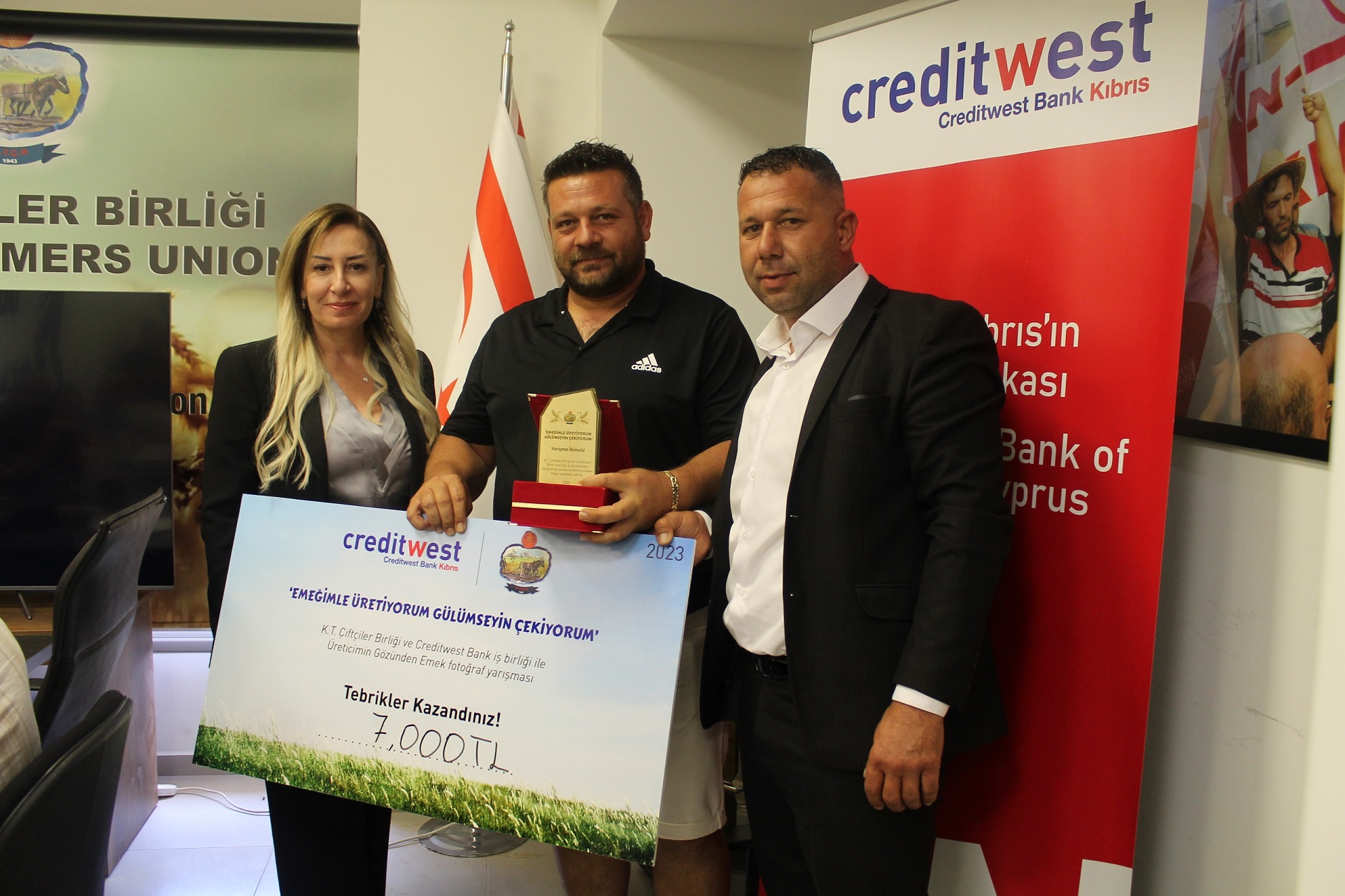 Lefkoşa, 27 Temmuz 23 (TAK): Kıbrıs Türk Çiftçiler Birliği ve Creditwest Bank iş birliği ile bu yıl ilki gerçekleşen “Emeğimle Üretiyorum Gülümseyin Çekiyorum” başlıklı fotoğraf yarışmasının sonuçları Kıbrıs Türk Çiftçiler Birliği’nde yapılan törenle açıklandı.