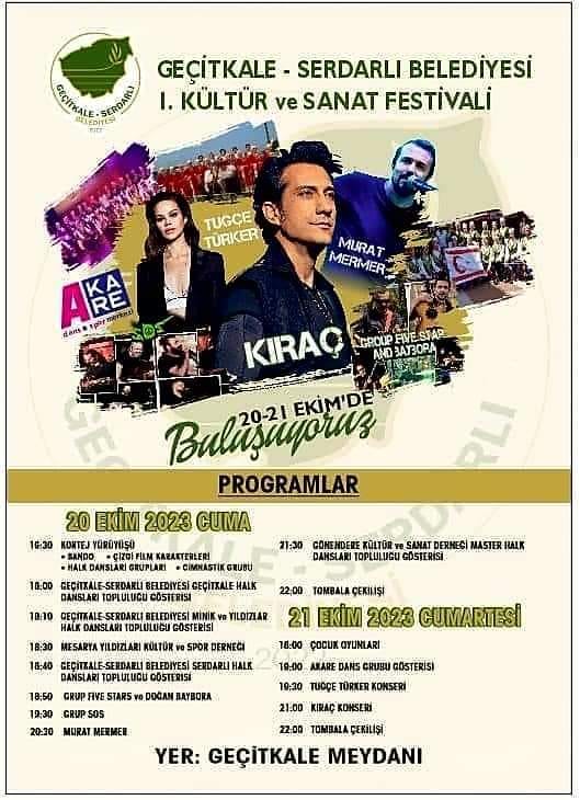 Lefkoşa, 18 Ekim 23 (TAK): 1. Geçitkale-Serdarlı Belediyesi Kültür ve Sanat Festivali Cuma günü yapılıyor.