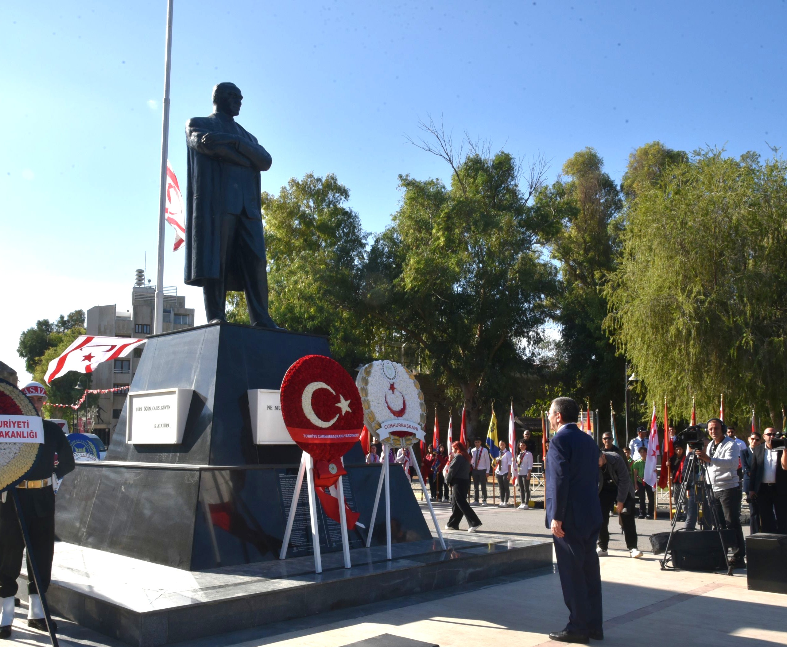 Lefkoşa, 15 Kasım 25 (TAK): KKTC’nin 42. kuruluş yıl dönümü nedeniyle Girne Kapısı’ndaki Atatürk Anıtı önünde tören düzenlendi.