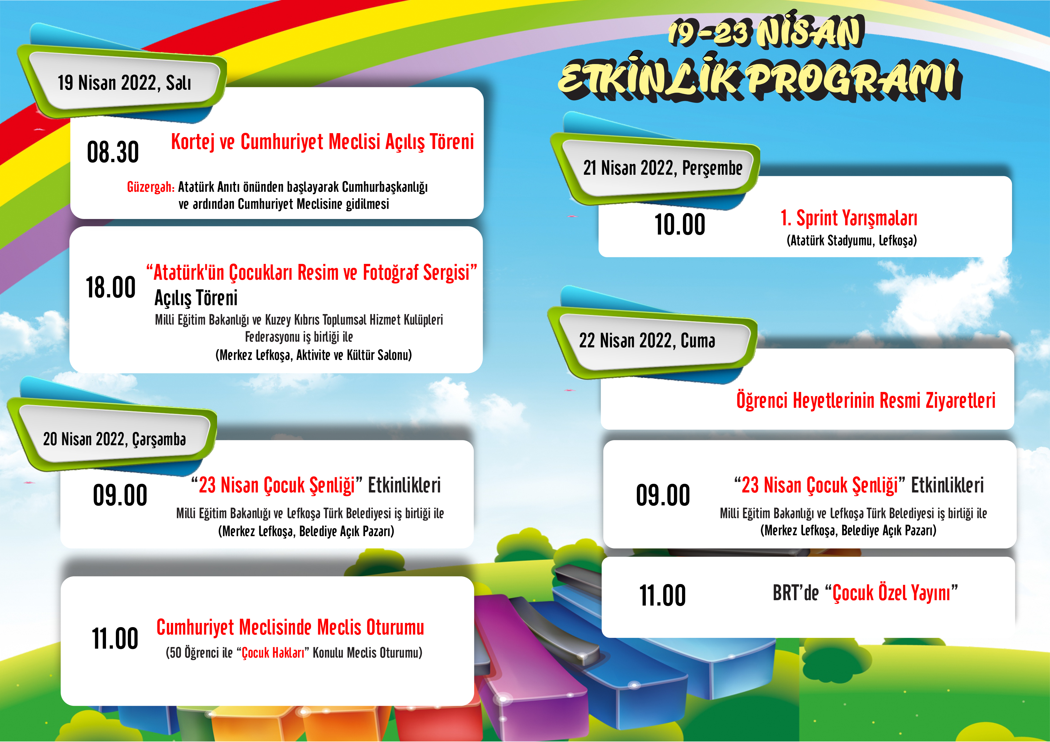 23 NİSAN ULUSAL EGEMENLİK VE ÇOCUK BAYRAMI KKTC’DE DE ETKİNLİKLERLE KUTLANACAK