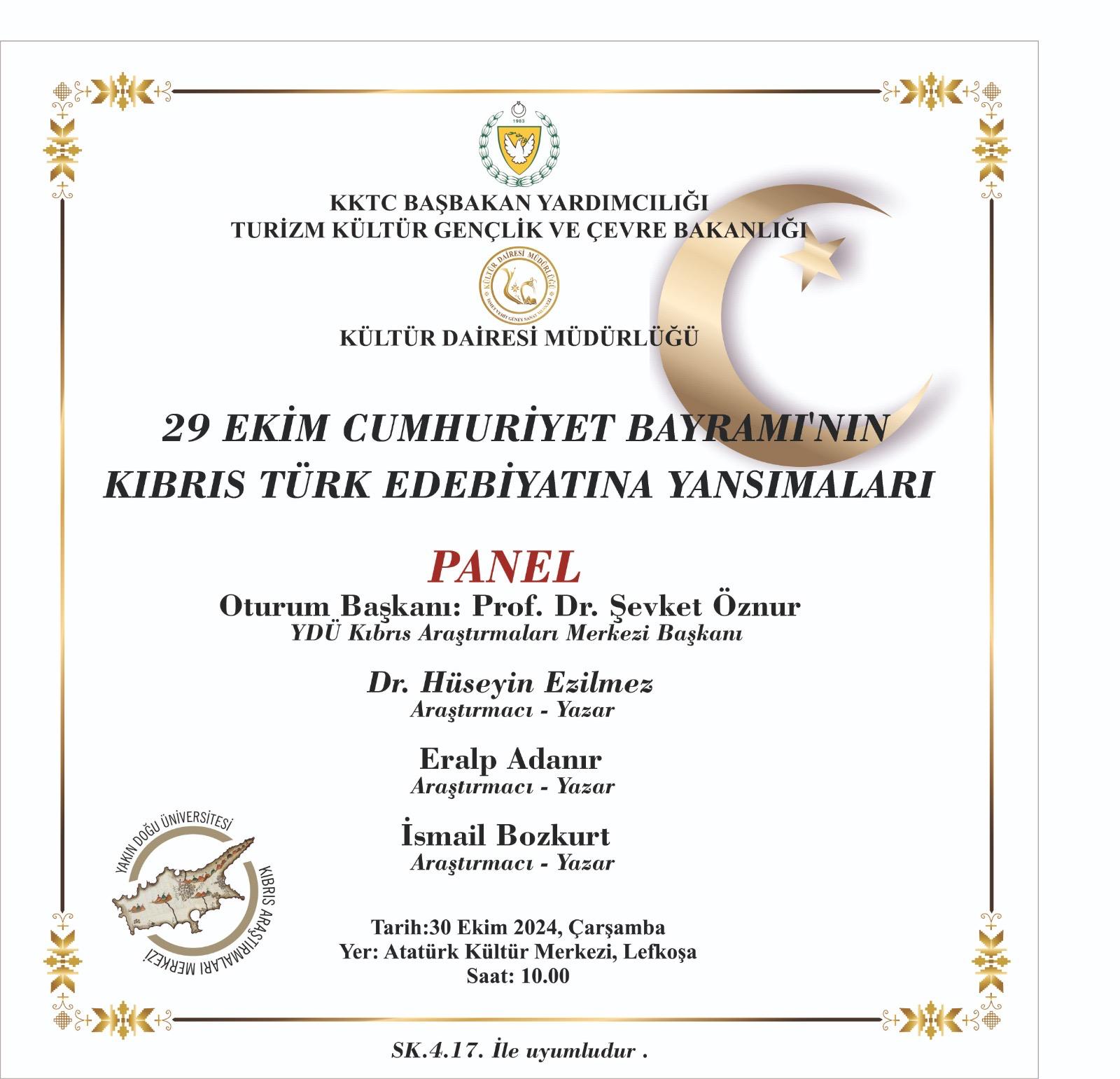 29 Ekim Cumhuriyet Bayramı'nın Kıbrıs Türk Edebiyatına Yansımaları konulu panel düzenleniyor