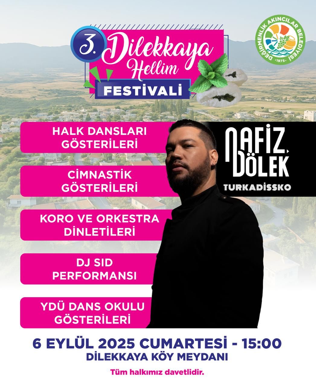 Lefkoşa, 4 Eylül 25 (TAK): Değirmenlik Akıncılar Belediyesi’nin organize ettiği 3. Dilekkaya Hellim Festivali, 6 Eylül Cumartesi günü yapılacak.