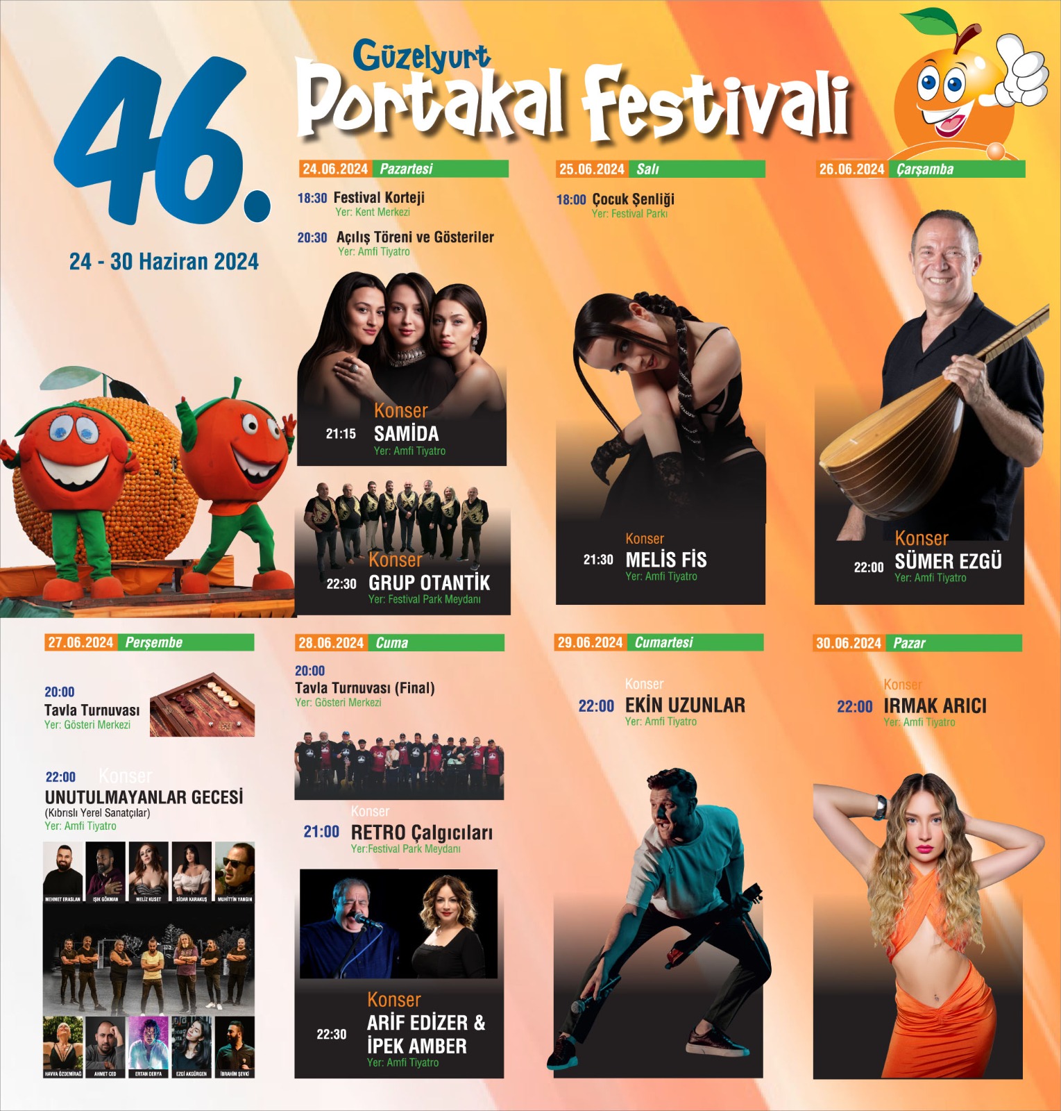 Lefkoşa, 24 Haziran 24 (TAK): 46. Güzelyurt Portakal Festivali bugün başlıyor.