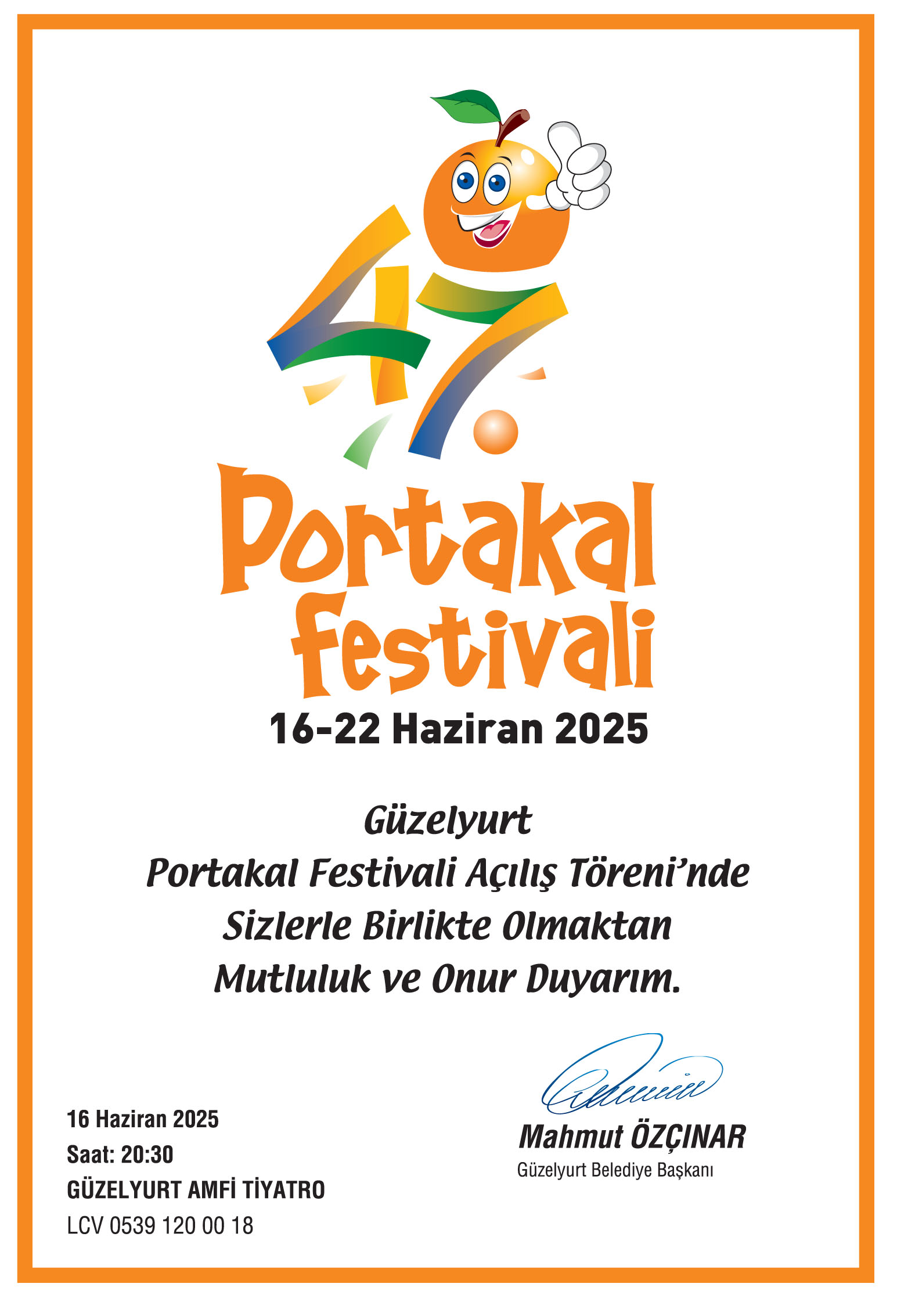 Lefkoşa, 13 Haziran 25 (TAK): 47. Güzelyurt Portakal Festivali 16 Haziran Pazartesi günü başlıyor.