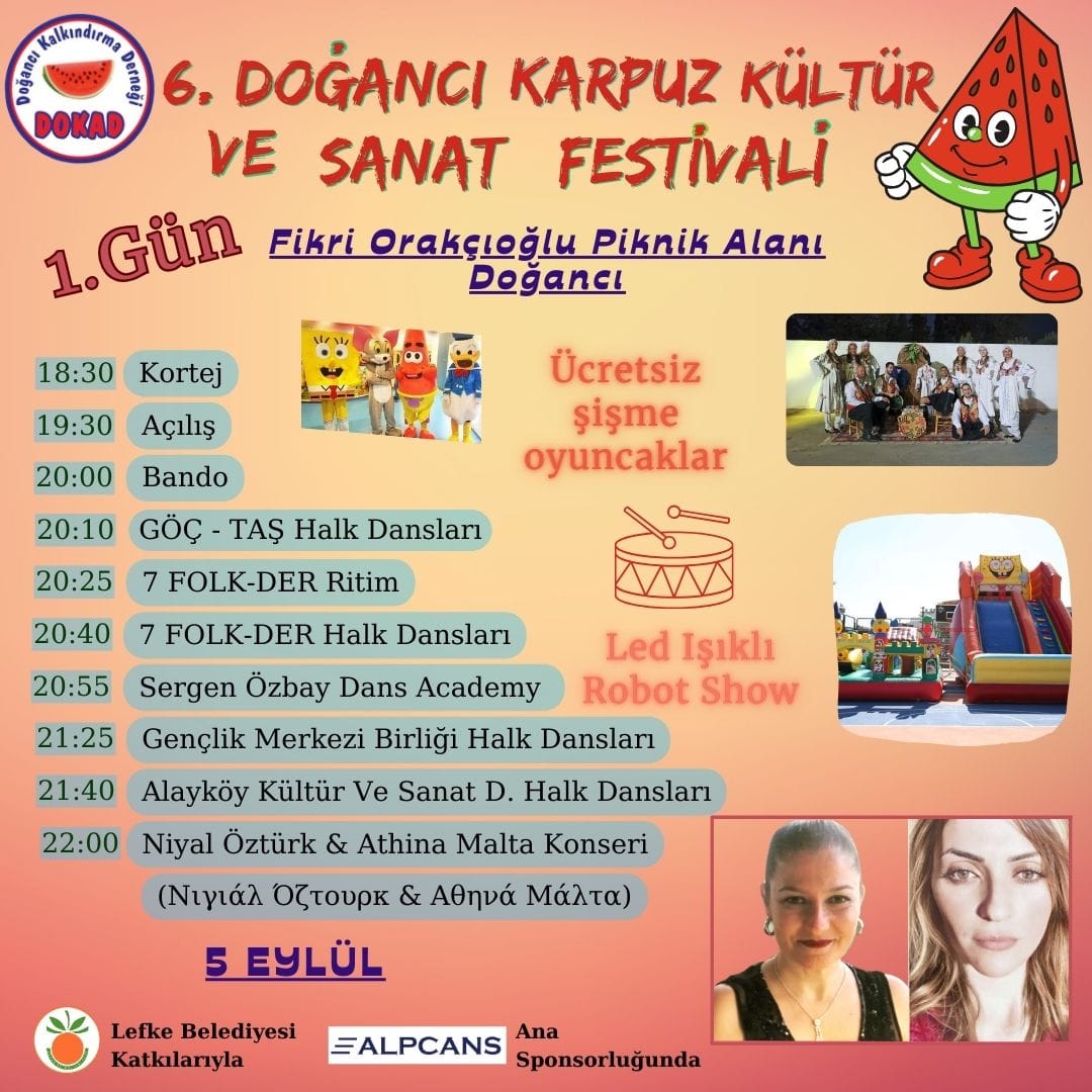 Lefkoşa, 3 Eylül 23 (TAK): 6. Doğancı Karpuz Kültür ve Sanat Festivali 5 Eylül Salı akşamı başlıyor.