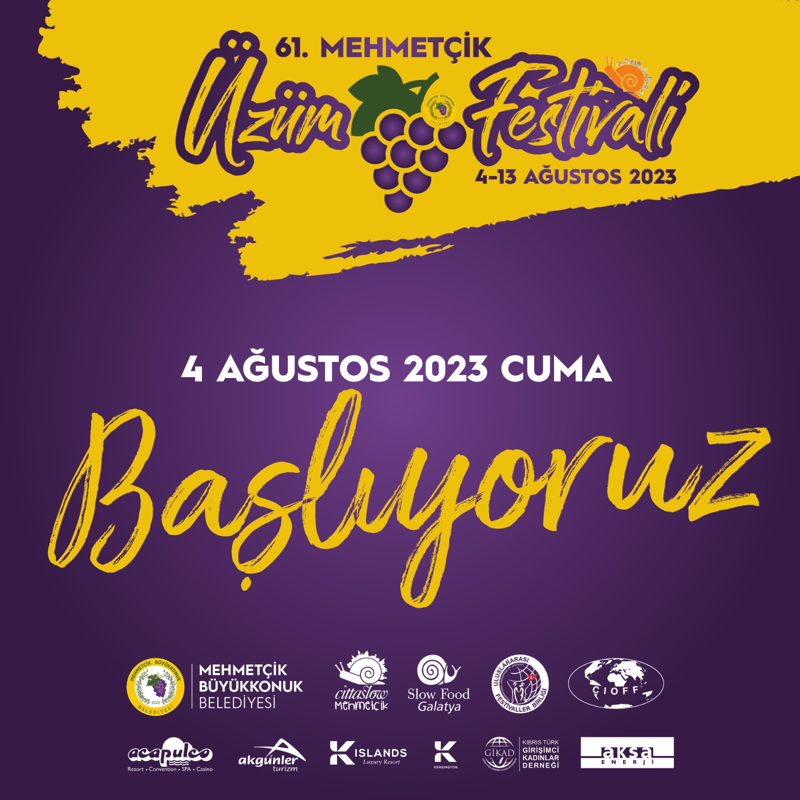 61. Mehmetçik Üzüm Festivali'nin başlangıç tarihi 4 Ağustos
