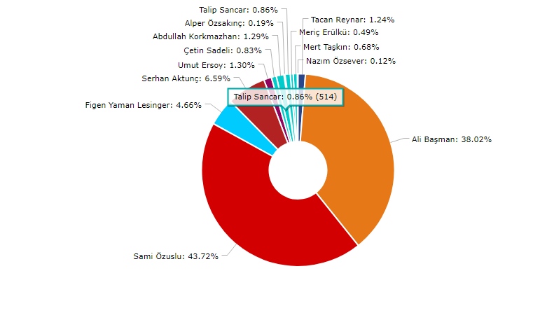 Özuslu seçimi yüzde 43.72 oy oranı ile önde götürüyor.