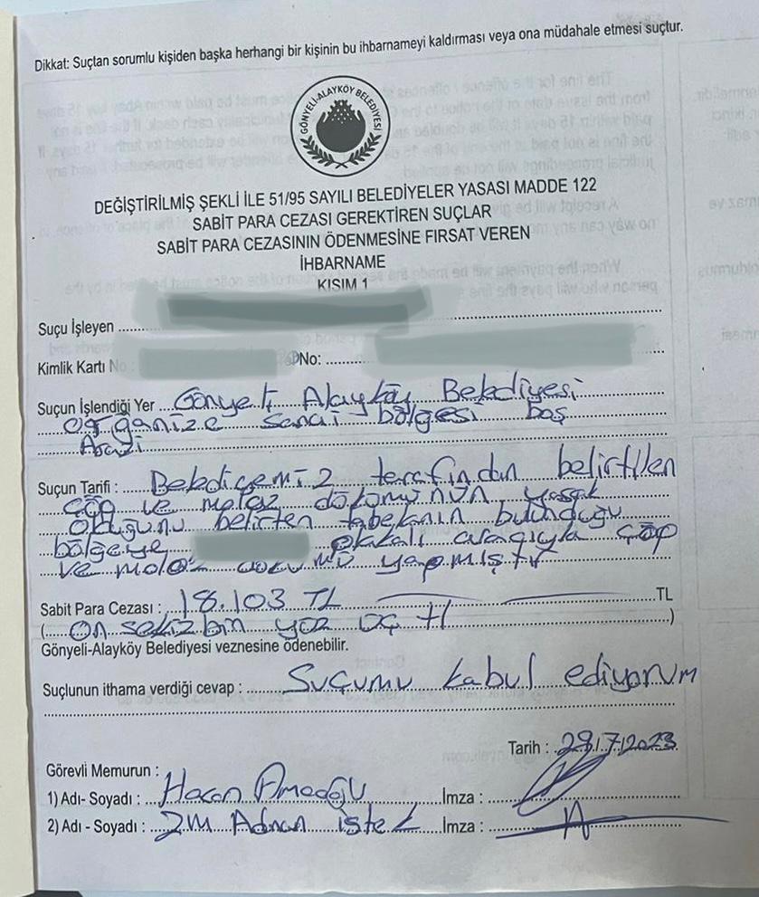 Alayköy Sanayi Bölgesi’nde yasak bölgeye çöp döken şahsa ceza kesildi