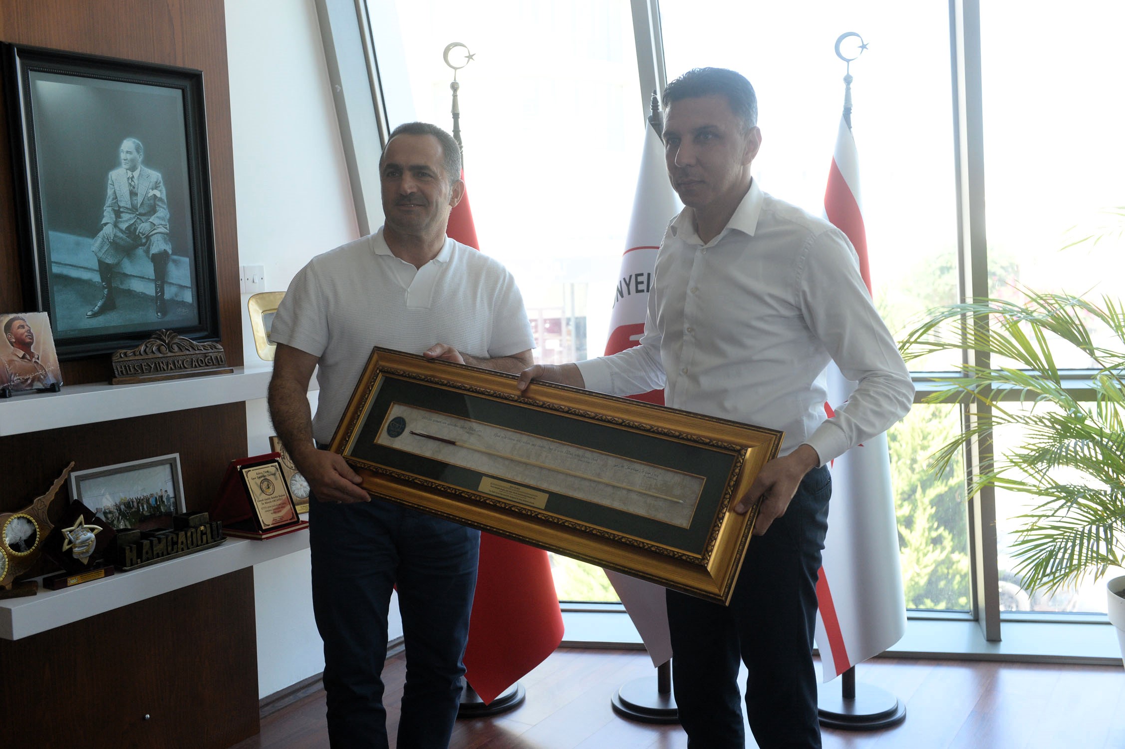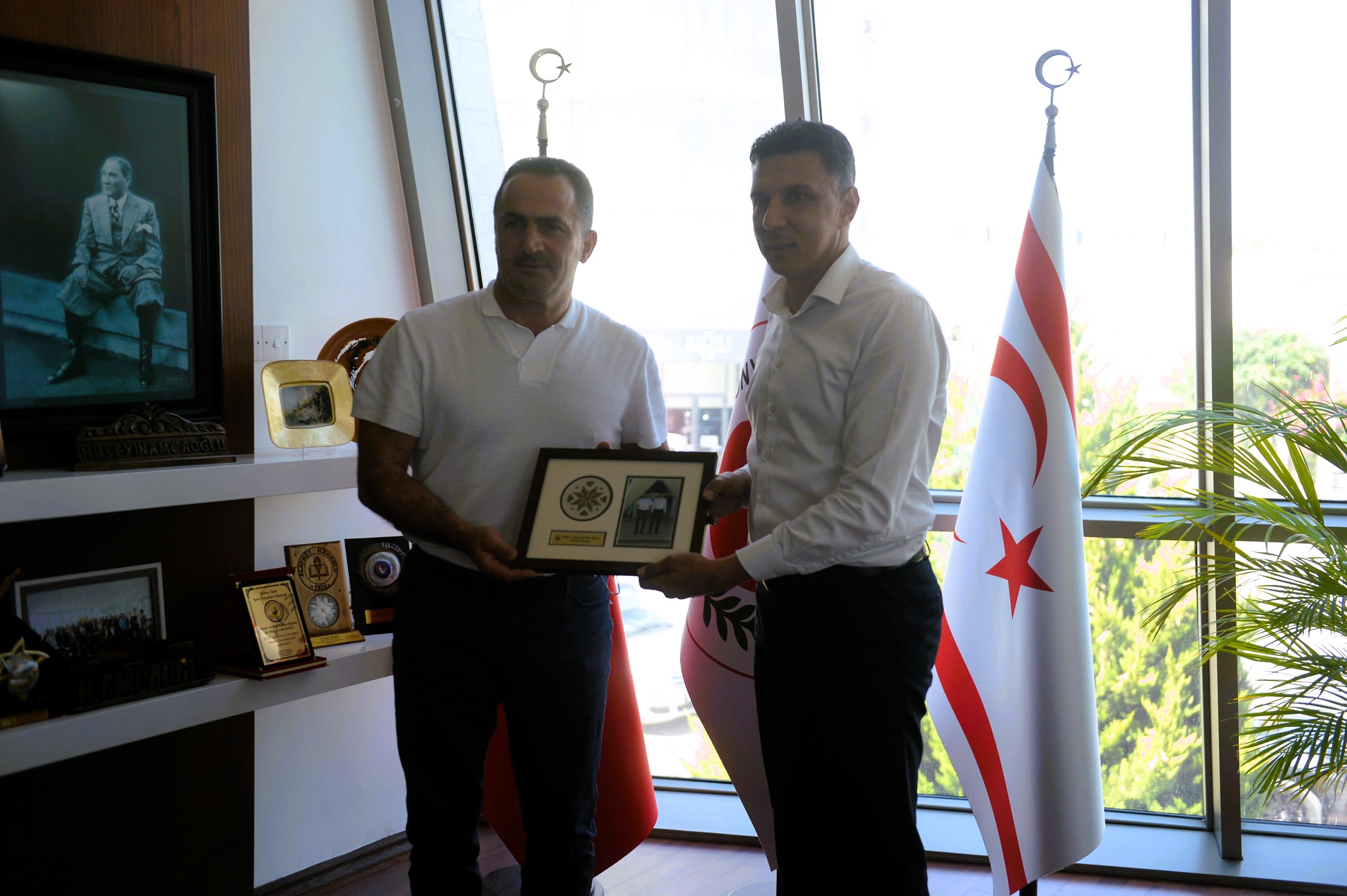 Lefkoşa, 18 Temmuz 23 (TAK): Gönyeli Alayköy Belediye Başkanı Hüseyin Amcaoğlu, Beyoğlu Belediye Başkanı Haydar Ali Yıldız’ı kabul etti.