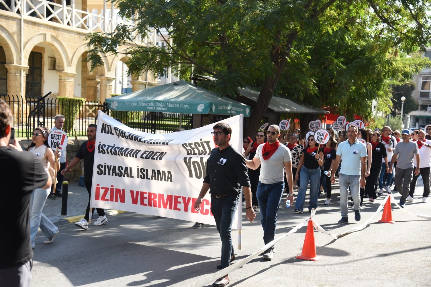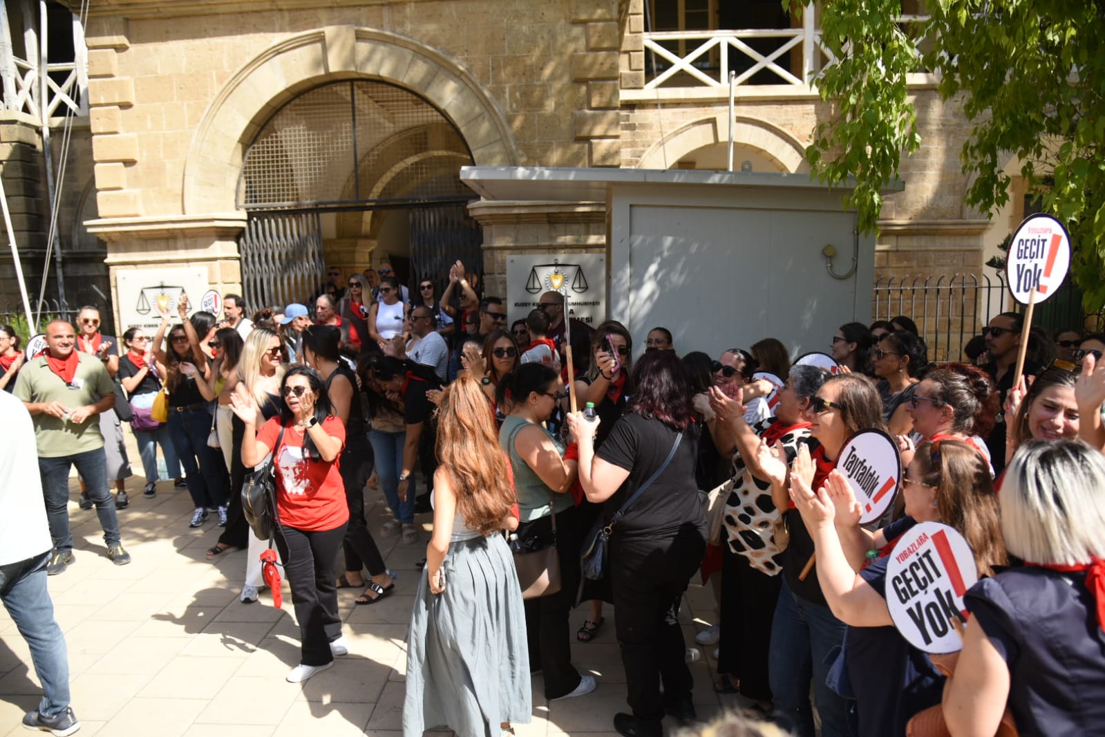 bekleyen Kıbrıs Türk Orta Eğitim Öğretmenler Sendikası (KTOEÖS) üyesi