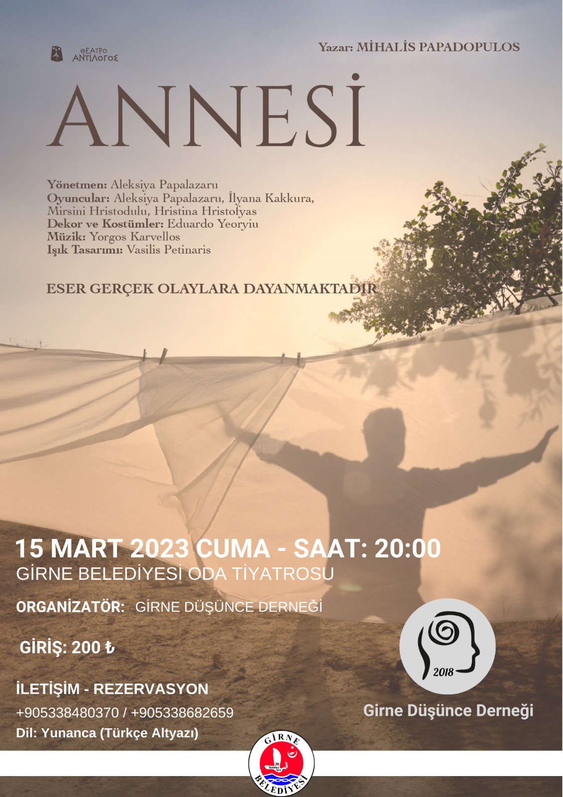 sahipliğinde, Antilogos Tiyatrosu’nun “ANNESİ” isimli oyunu yarın akşam saat 20.00’de