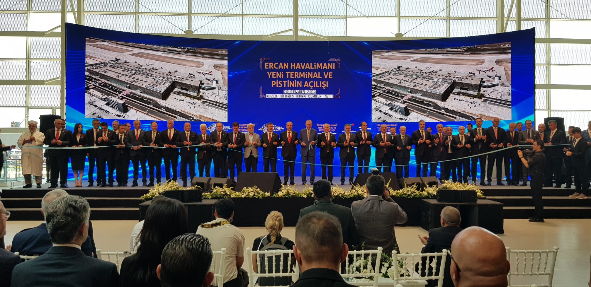 Lefkoşa, 20 Temmuz 23 (TAK): Bayındırlık ve Ulaştırma Bakanı Erhan Arıklı, Ercan Havalimanı yeni terminal binası ve pistinin açılış törenine katıldı.