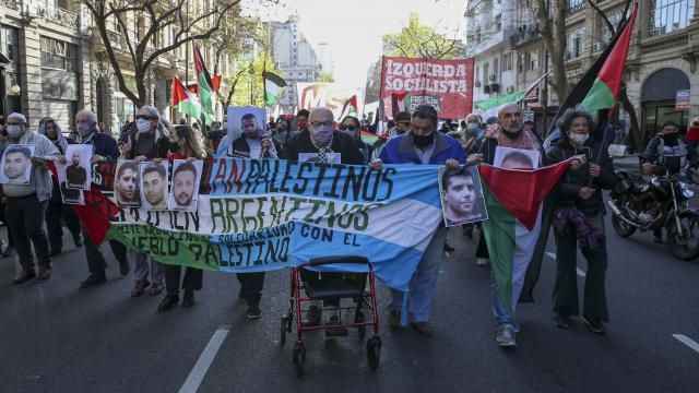 Bogota, 4 Kasım 23 (TAK): Arjantin'de bir araya gelen yüzlerce kişi, İsrail'in Gazze'de devam eden saldırılarını protesto etti.