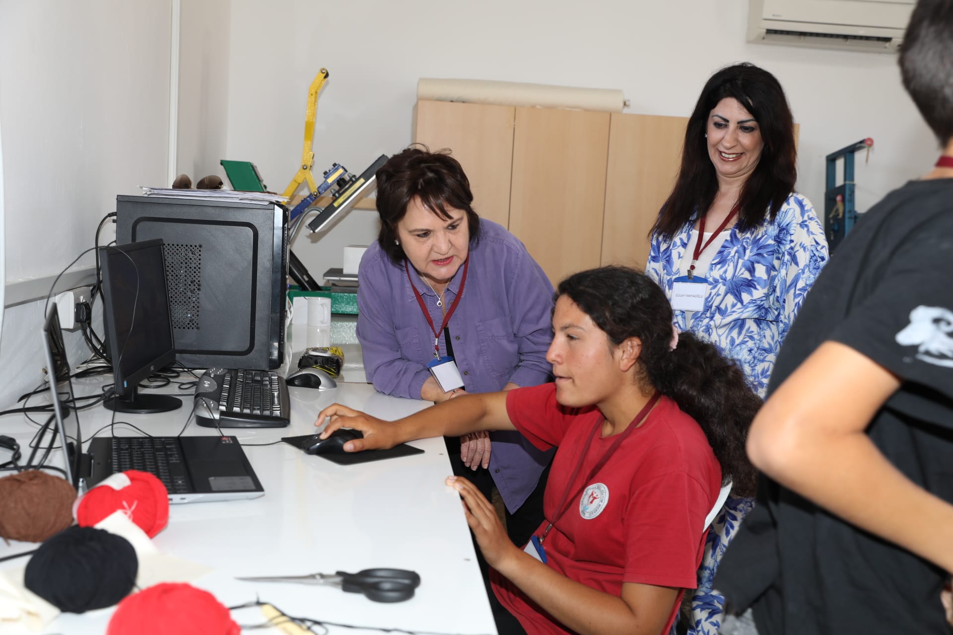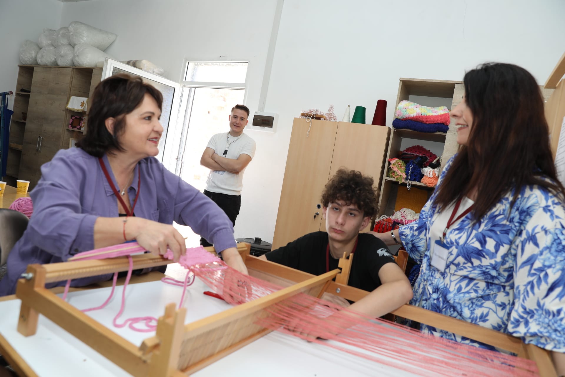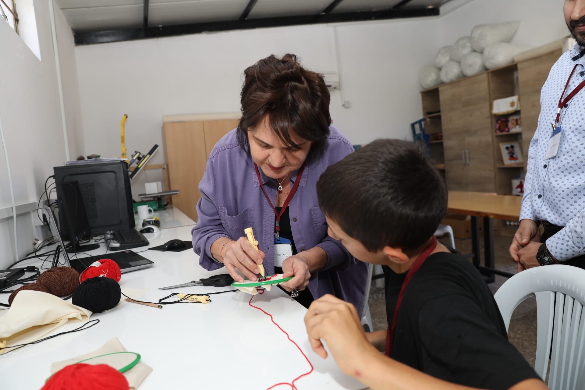 Üstel, çocuklarla birlikte atölye çalışmalarına katıldı, onlarla sohbet etti