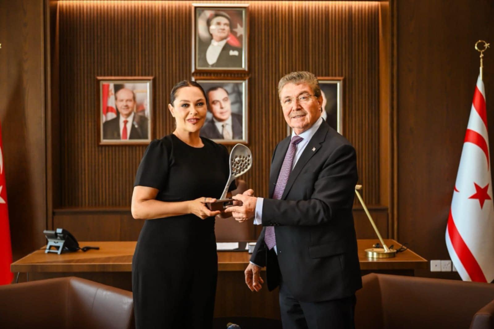 2025” turnuvası kapsamında adada bulunan sanatçı Hülya Avşar’ı kabul etti.