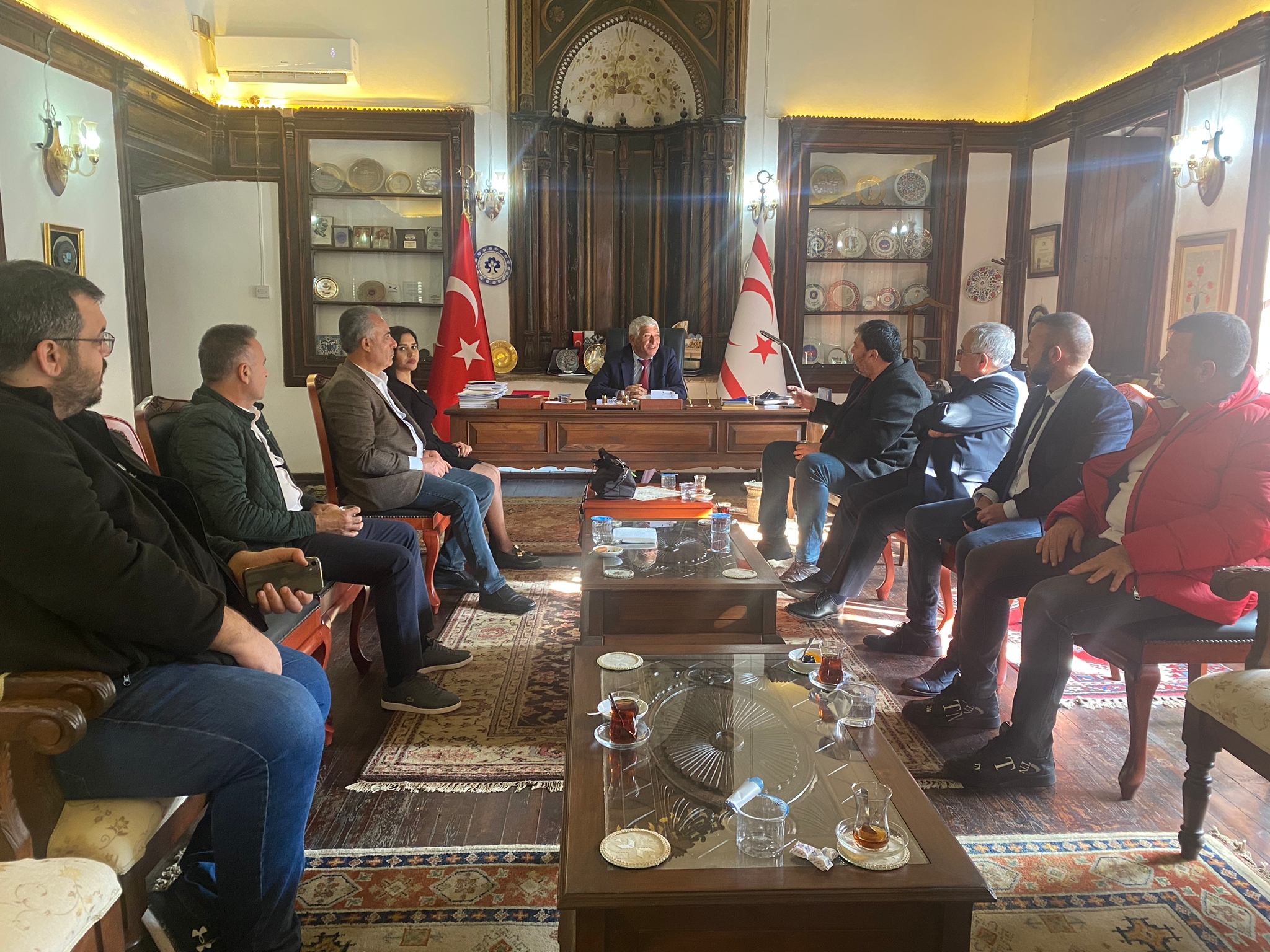 Lefkoşa, 17 Ocak 2023 (TAK): Kıbrıs Türk Belediyeler Birliği ve Güzelyurt Belediye Başkanı Mahmut Özçınar, Doğu Akdeniz Belediyeler Birliği (DABB) Genel Sekreteri Esra Alkan ile Birliğe üye Mersin Mezitli Belediyesi ve Mersin Yenişehir Belediyesi’nden bir heyetle biraraya geldi.