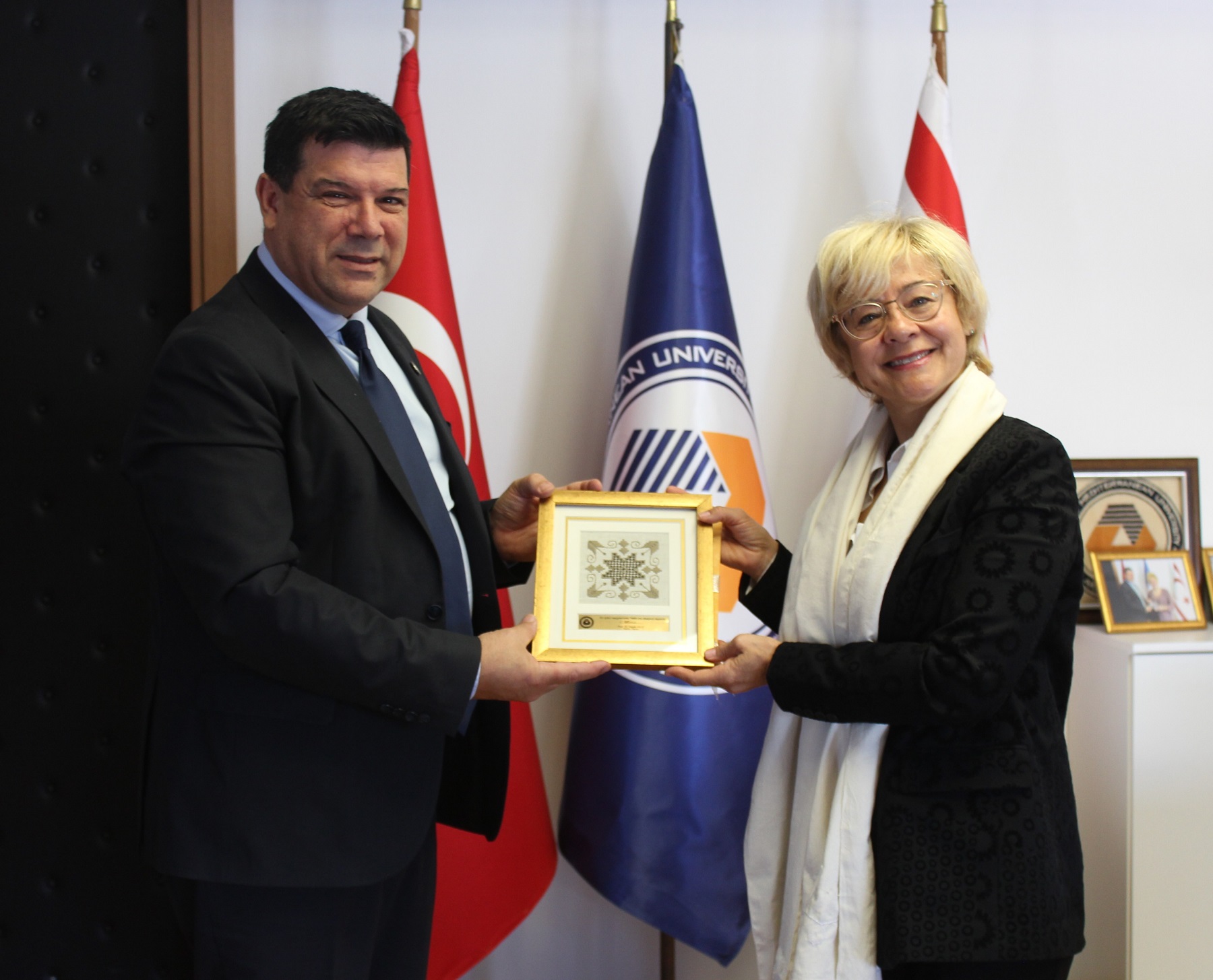 Lefkoşa, 13 Mart 24 (TAK): TC Lefkoşa Büyükelçisi Metin Feyzioğlu’nun eşi Birgül Feyzioğlu, Doğu Akdeniz Üniversitesi (DAÜ) Rektörü Prof. Dr. Hasan Kılıç’ı ziyaret etti.