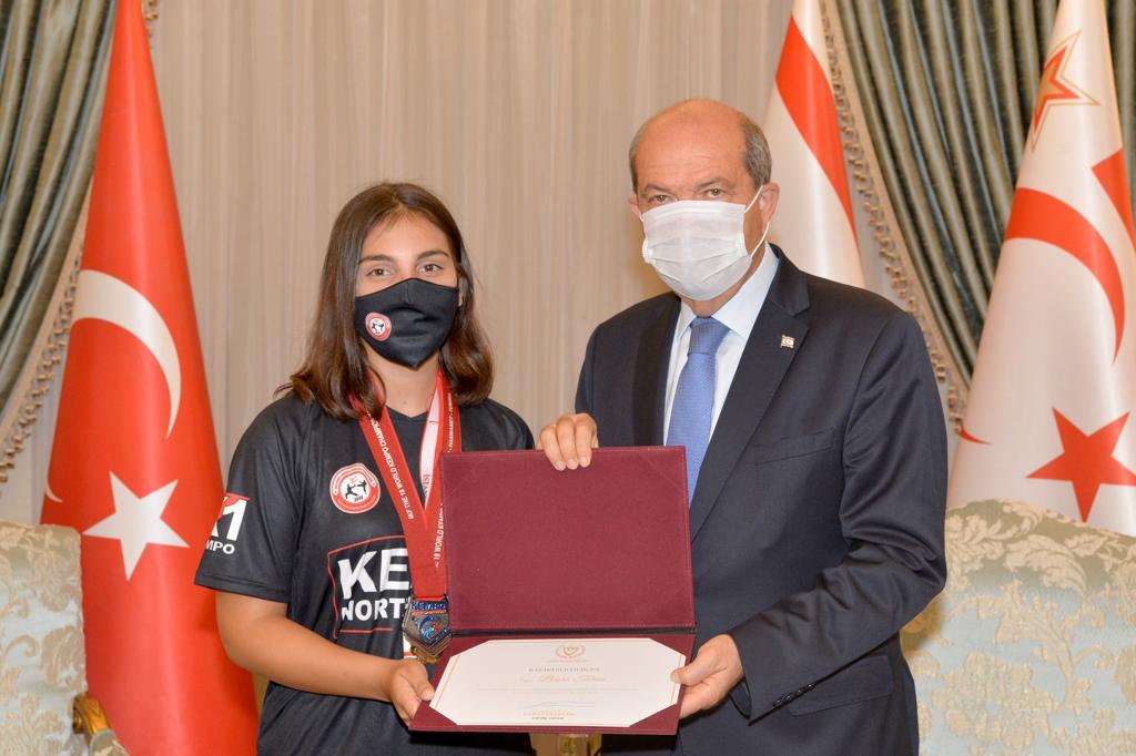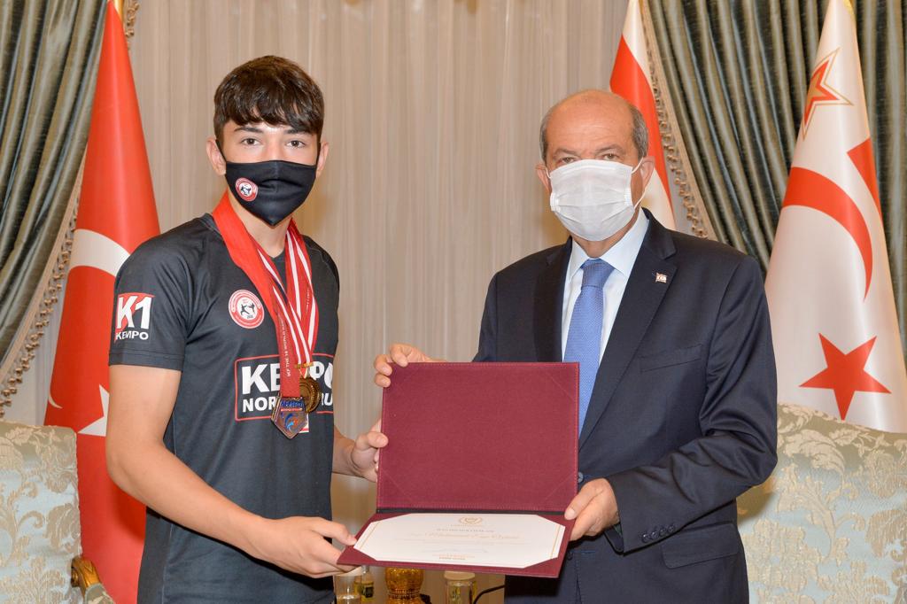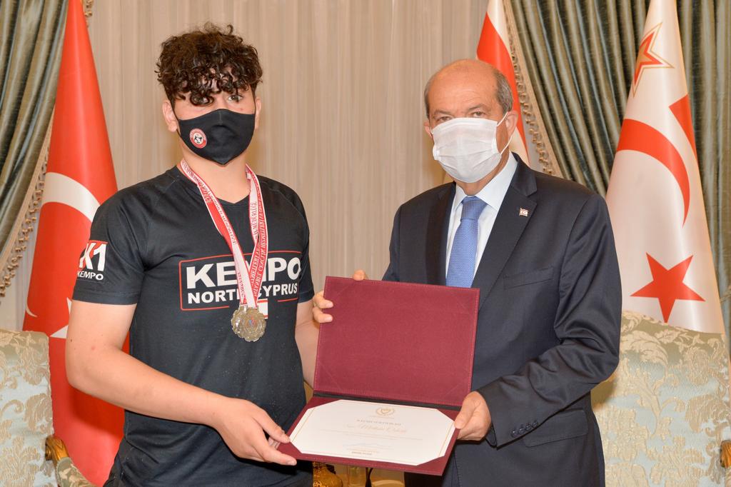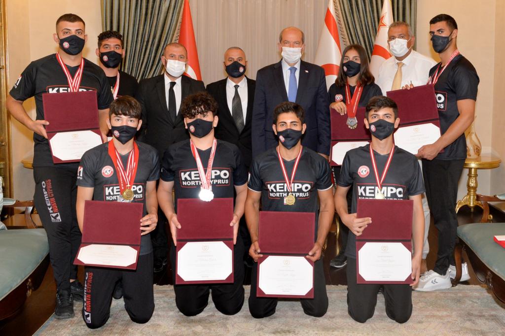 Lefkoşa, 7 Temmuz 22 (TAK): Cumhurbaşkanı Ersin Tatar, KKTC Kempo Savunma Sporları Federasyonu yönetimini ve başarı elde eden sporcuları kabul etti.