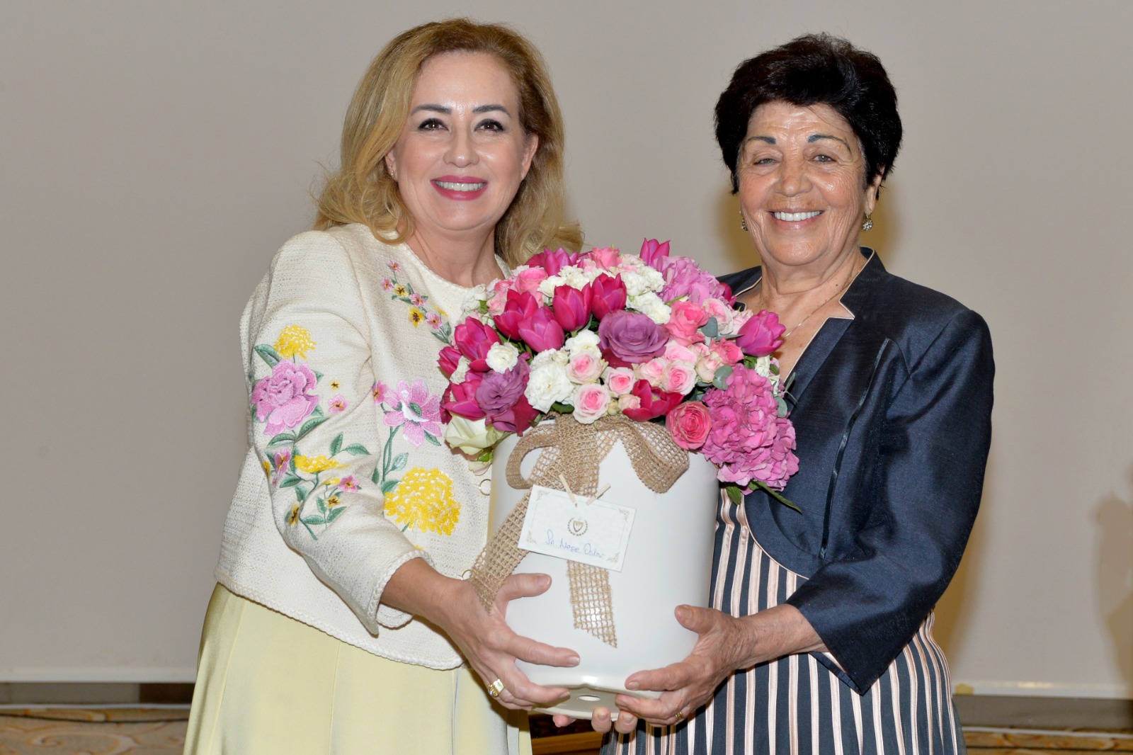 eşi Sibel Tatar, Neşe Oskar’ın düzenlediği ve geliri yaşlı bakımevine bağışlanacak "el işi göz nuru" sergisine katıldı.