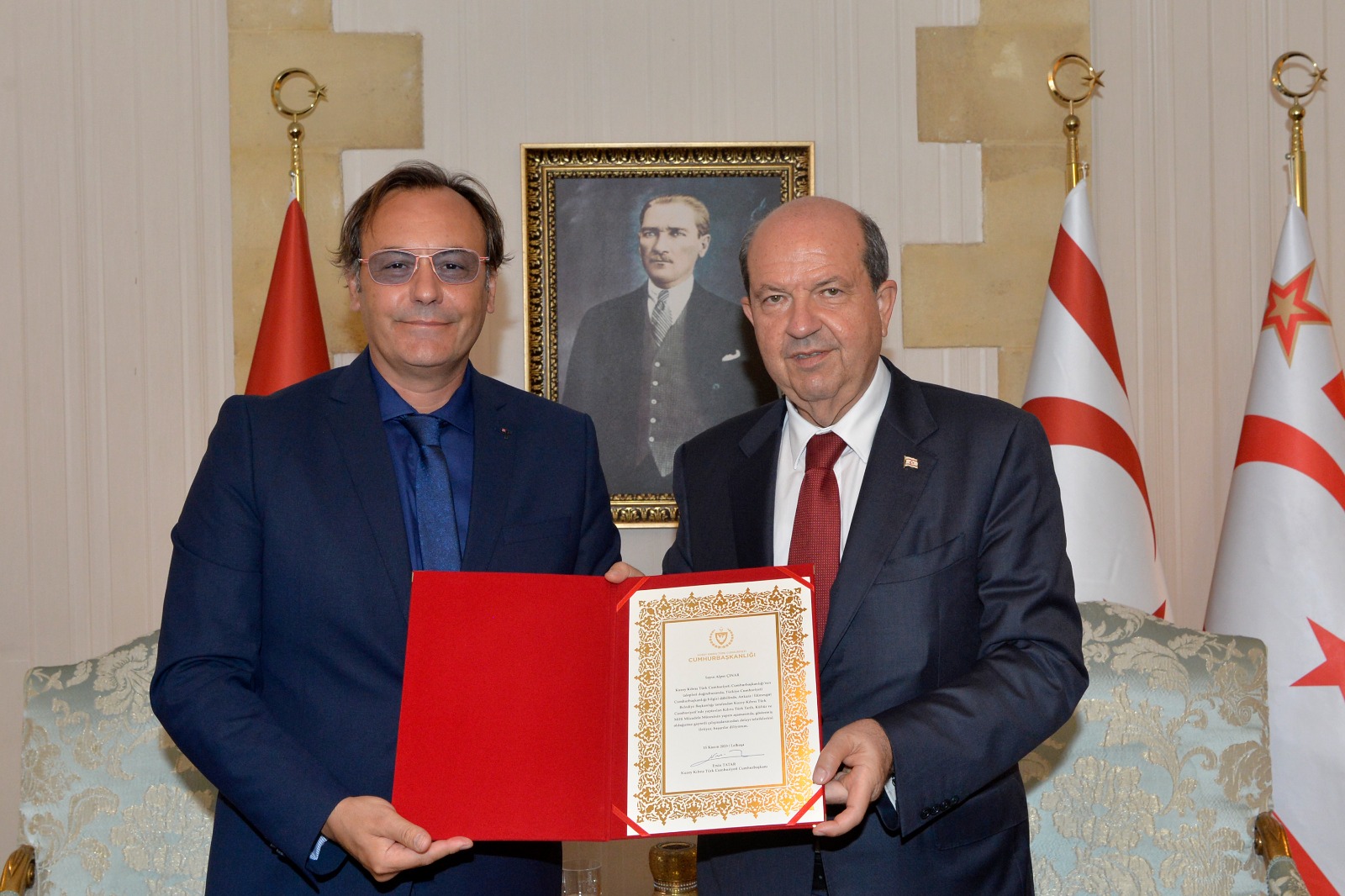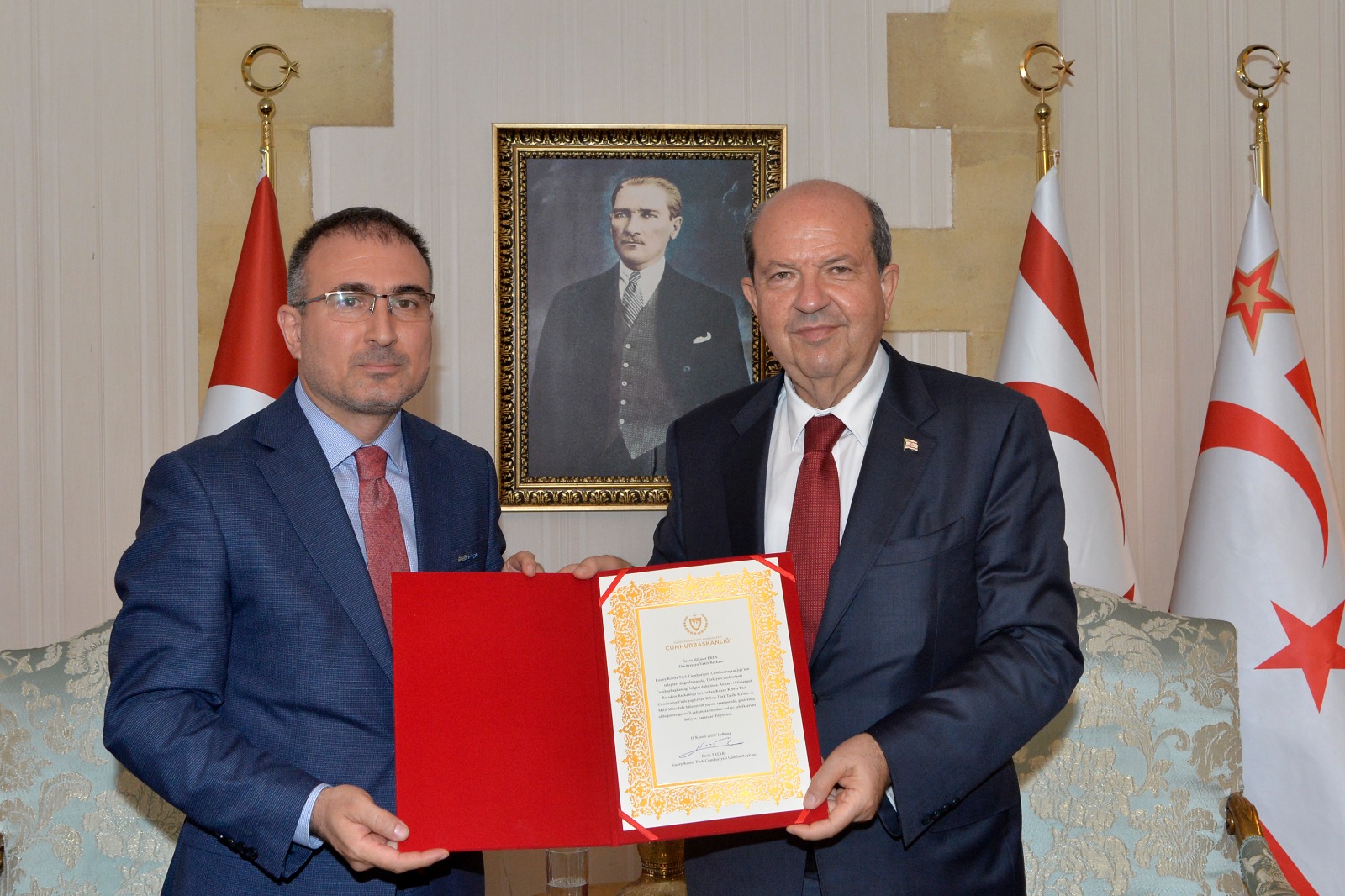 Lefkoşa, 15 Kasım 23 (TAK): Cumhurbaşkanı Ersin Tatar, EkoAvrasya Vakfı Başkanı Hikmet Eren ve beraberindeki heyeti kabul etti.