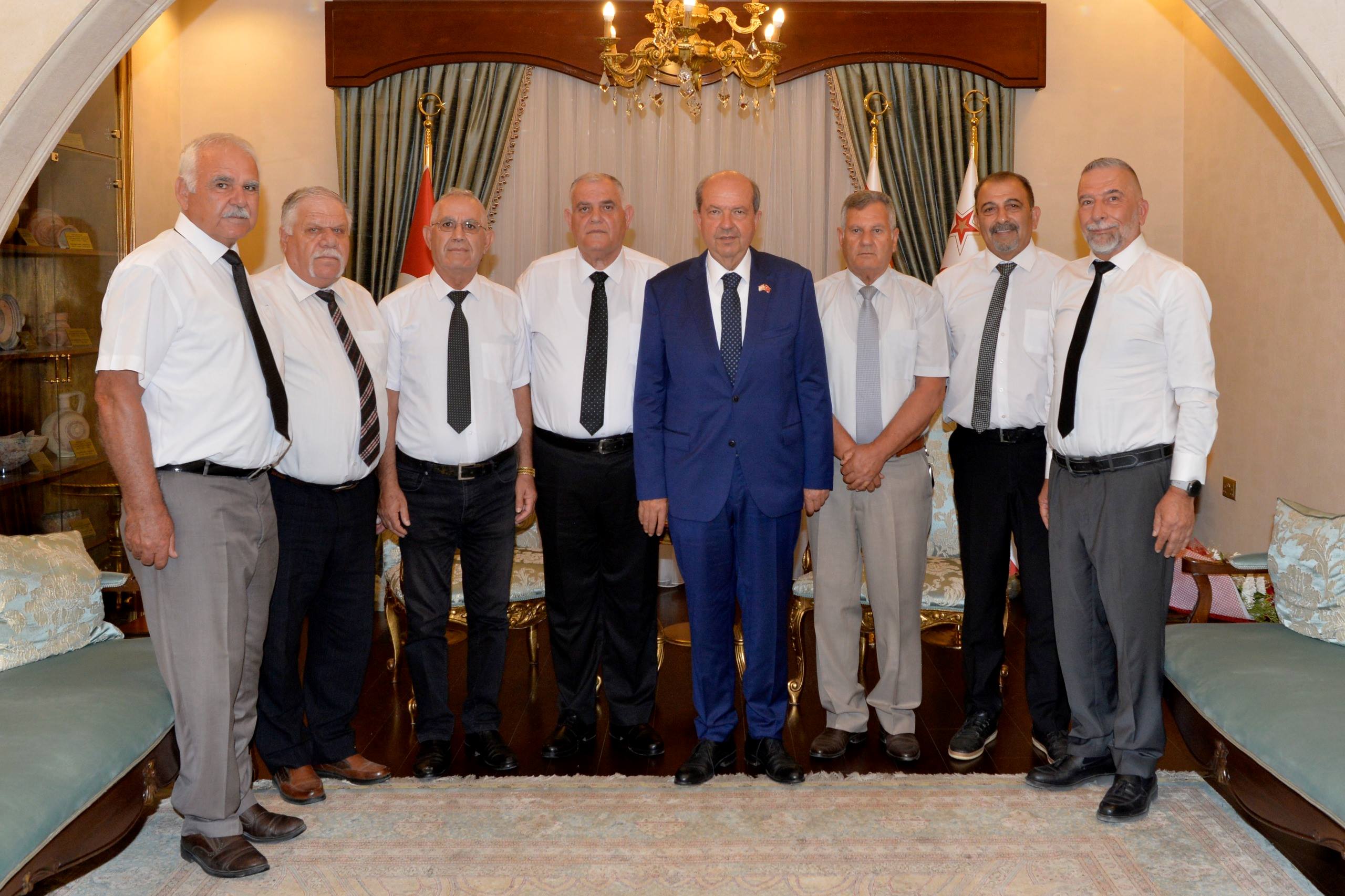 Lefkoşa, 24 Haziran 24 (TAK): Cumhurbaşkanı Ersin Tatar, Birol Atasü başkanlığındaki Emekli Polisler Derneği Yönetim Kurulu üyelerini kabul etti.