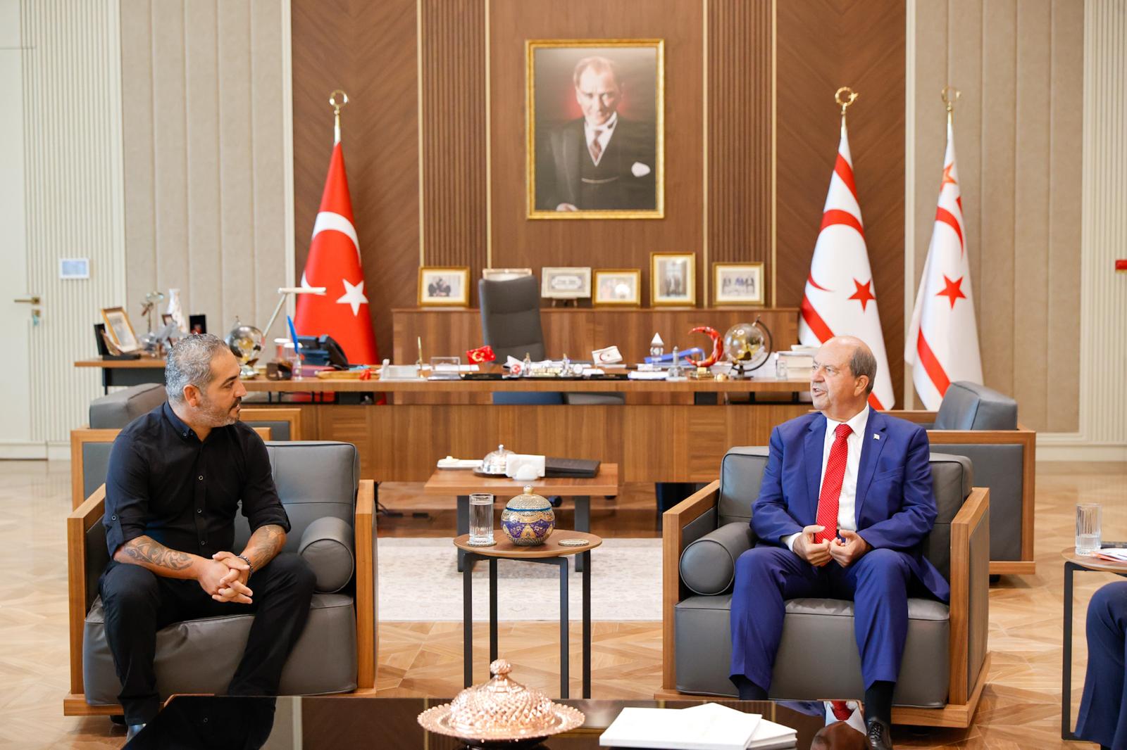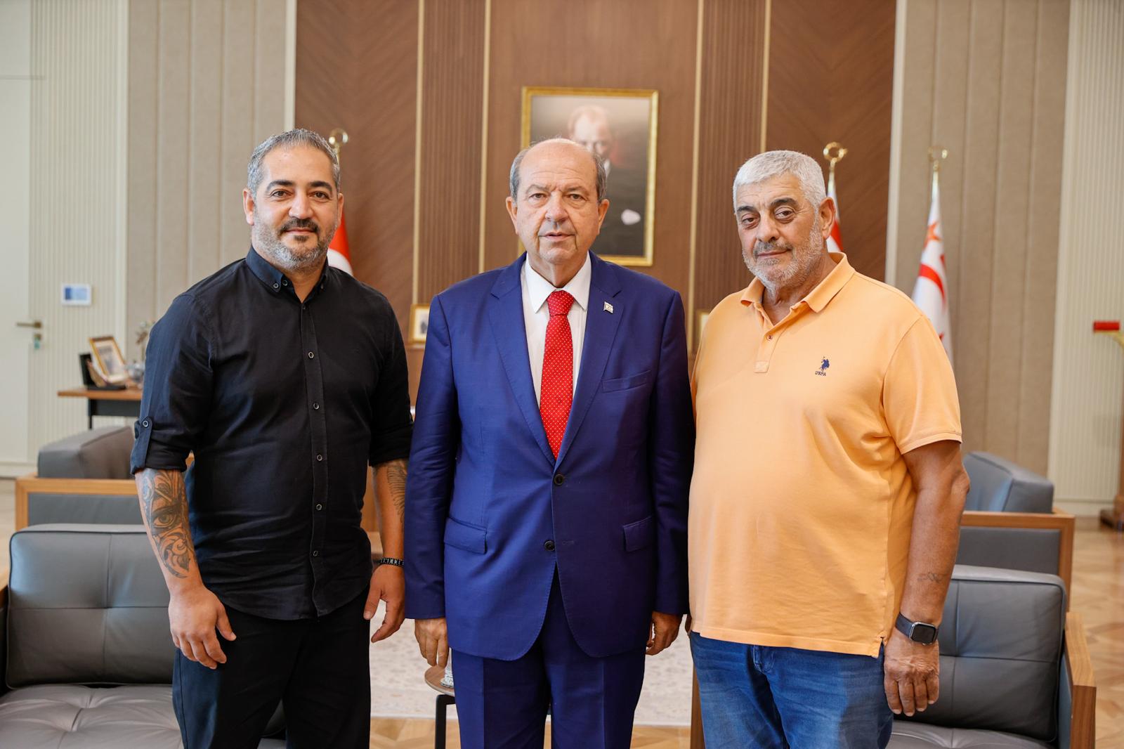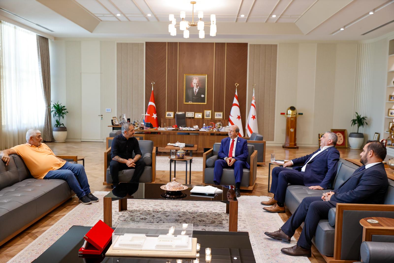 Lefkoşa, 19 Eylül 25 (TAK): Cumhurbaşkanı Ersin Tatar, Dilekkaya Kırıkkale Spor Kulübü (DİKA) Eşbaşkanı Samet Dilekkaya ve beraberindeki heyeti kabul ederek görüştü.