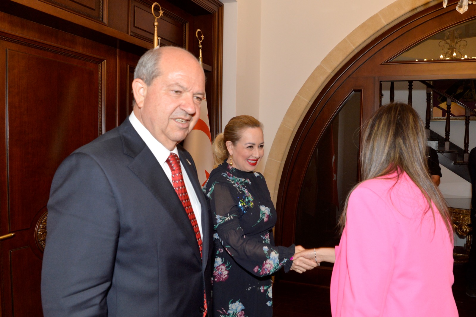 Lefkoşa, 20 Nisan 23 (TAK): Cumhurbaşkanı Ersin Tatar ve eşi Sibel Tatar, Cumhurbaşkanlığı personeliyle bayramlaştı.