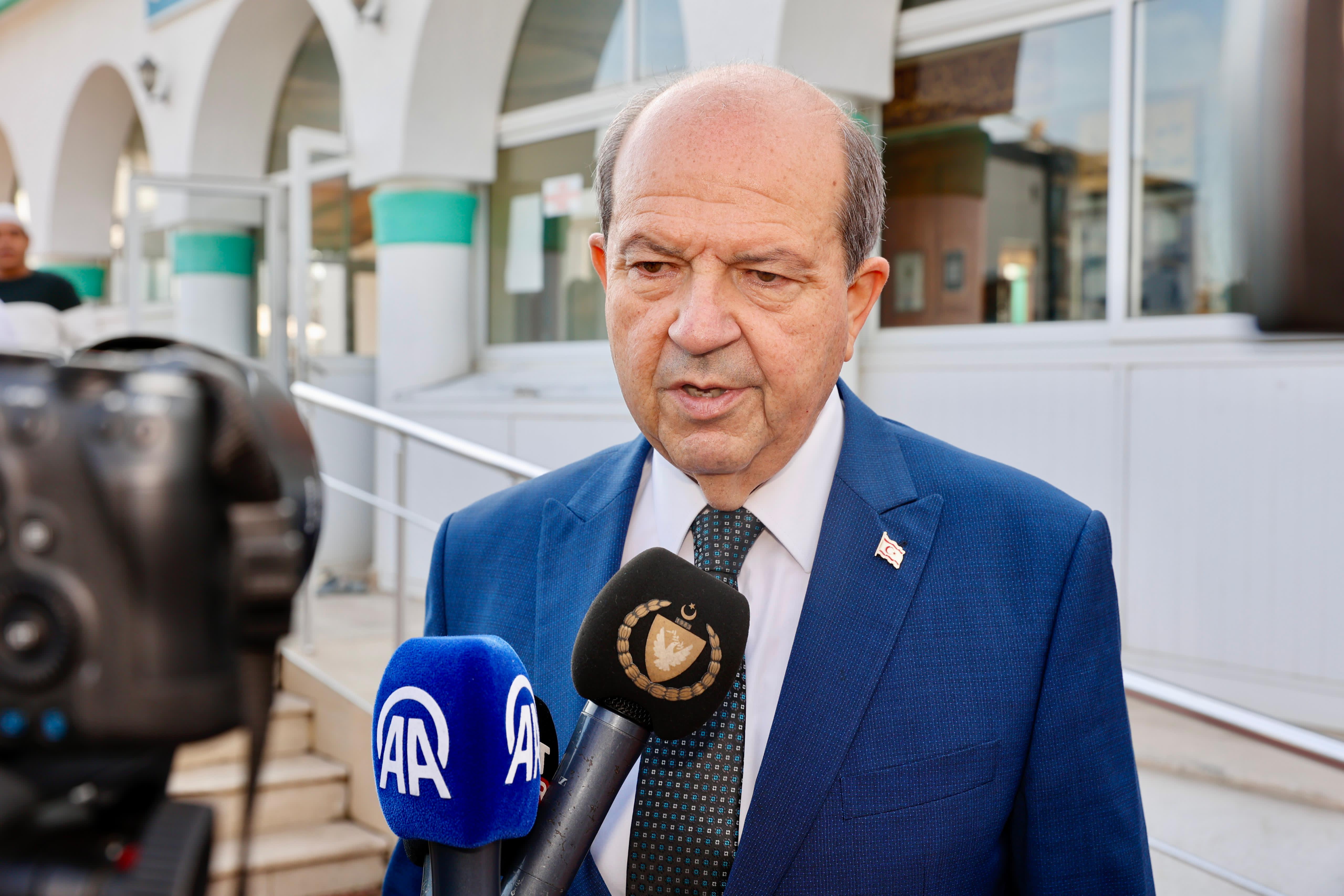 Lefkoşa, 10 Nisan 24 (TAK): Cumhurbaşkanı Ersin Tatar, Ramazan Bayramı namazını Başkent Lefkoşa'daki Hz. Ebubekir Camisi'nde kıldı.