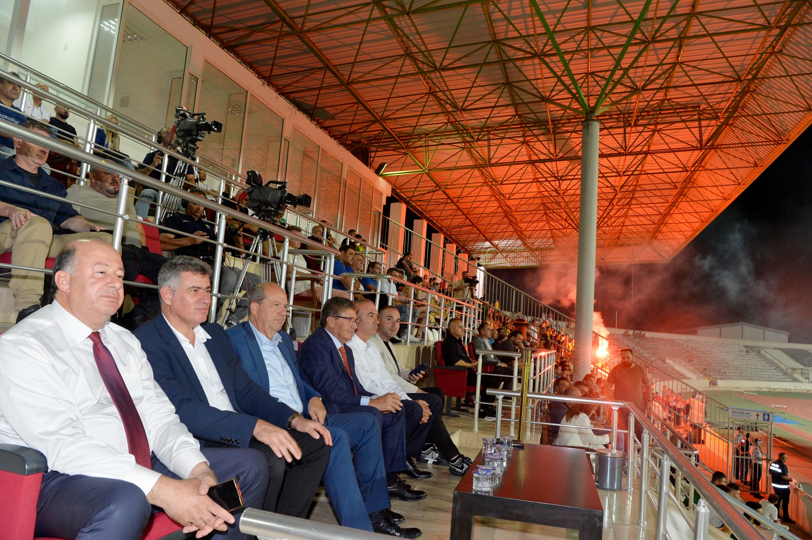 Lefkoşa, 16 Eylül 23 (TAK): Cumhurbaşkanı Ersin Tatar, BRT 60. Yıl Süper Kupa finalini izledi.