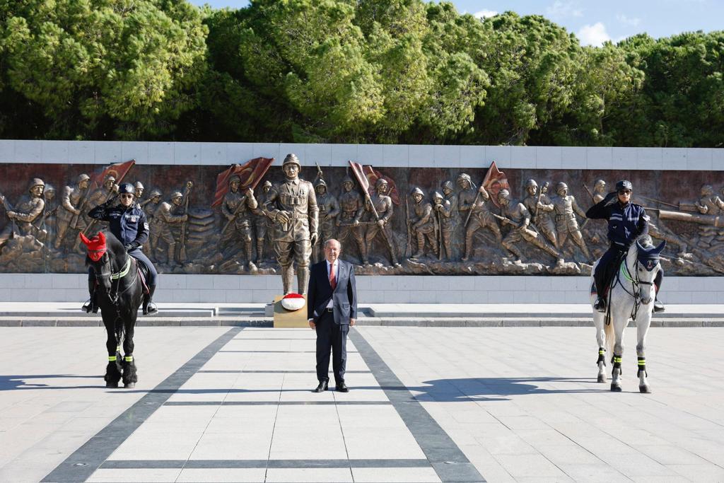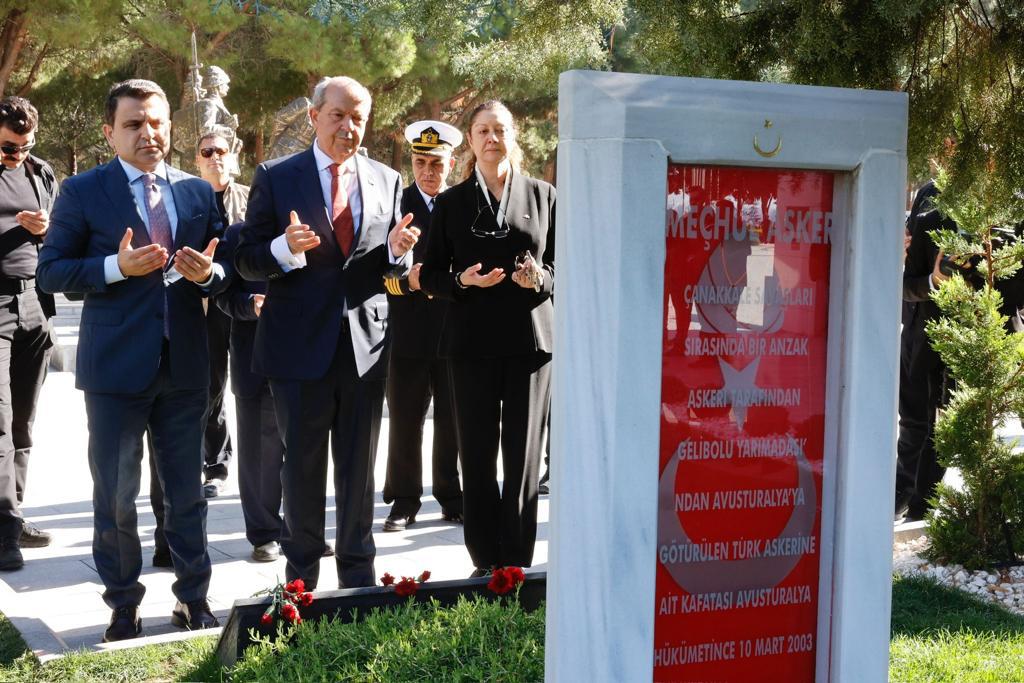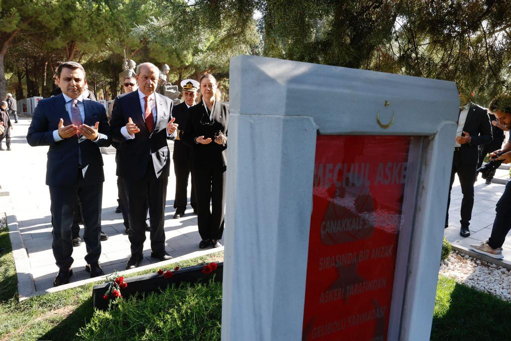 Çanakkale, 28 Ekim 23 (TAK): Cumhurbaşkanı Ersin Tatar, 1915 yılında I. Dünya Savaşı sırasında Çanakkale Savaşlarında hayatını kaybeden Türk askerlerin anısına yaptırılan Çanakkale Şehitleri Abidesi’ni ziyaret etti.