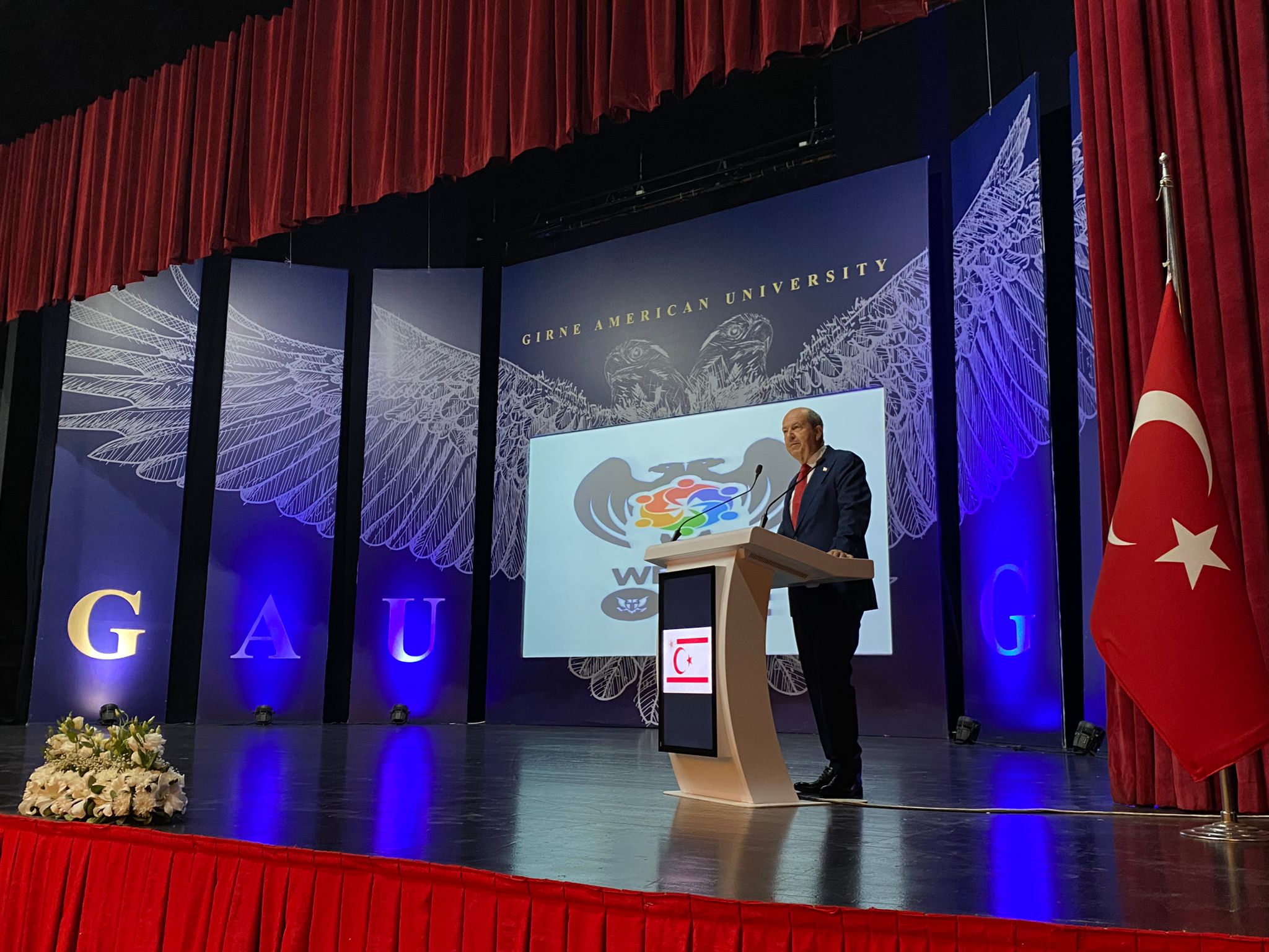 Girne, 20 Ekim 23 (TAK): Cumhurbaşkanı Ersin Tatar, Girne Amerikan Üniversitesi (GAÜ) 2023-2024 Akademik Yılı Açılış Töreni’ne katıldı ve ilk dersi verdi.