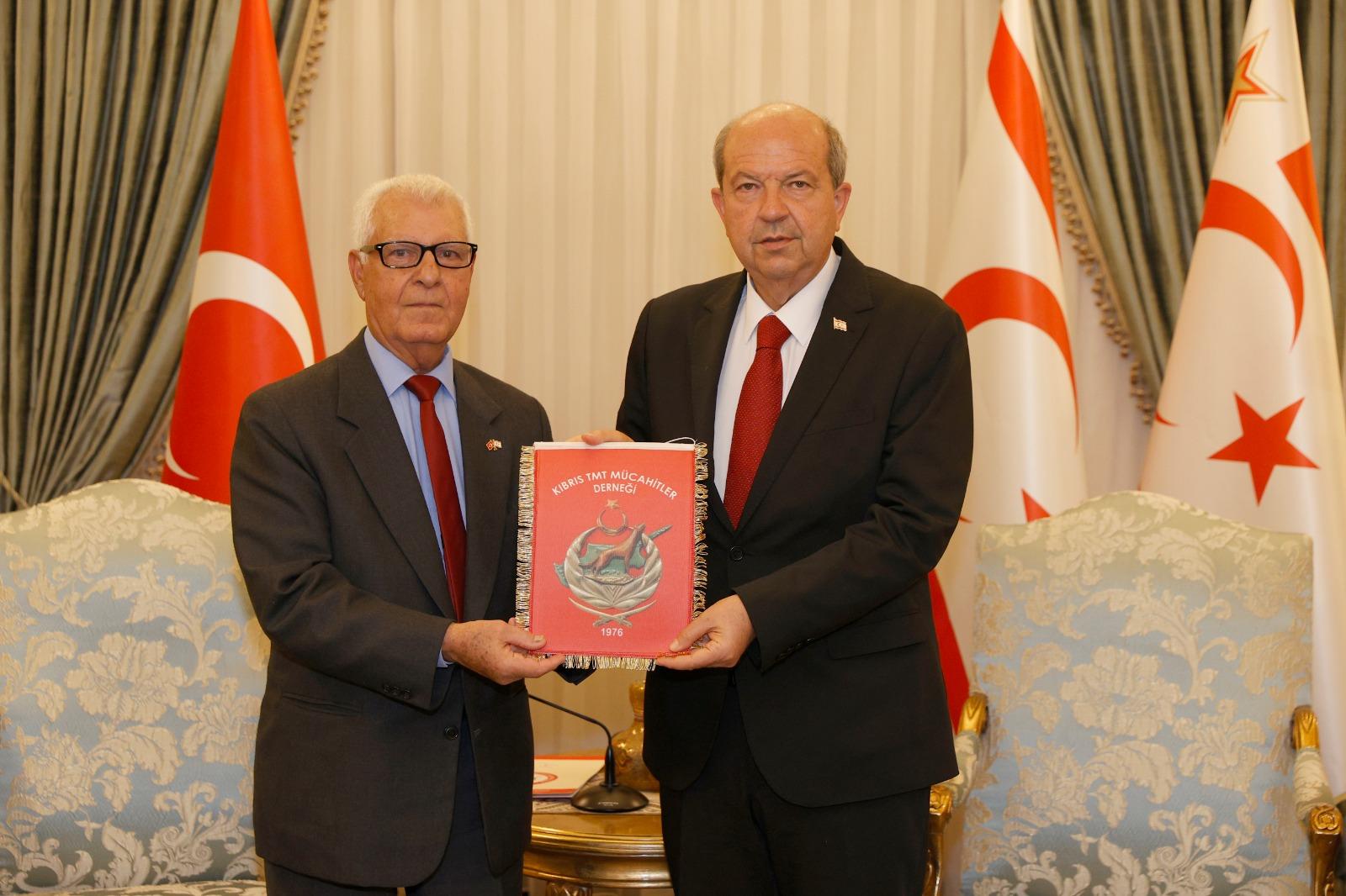 Cumhurbaşkanı Tatar, Kıbrıs TMT Mücahitler Derneği heyetini kabul etti.