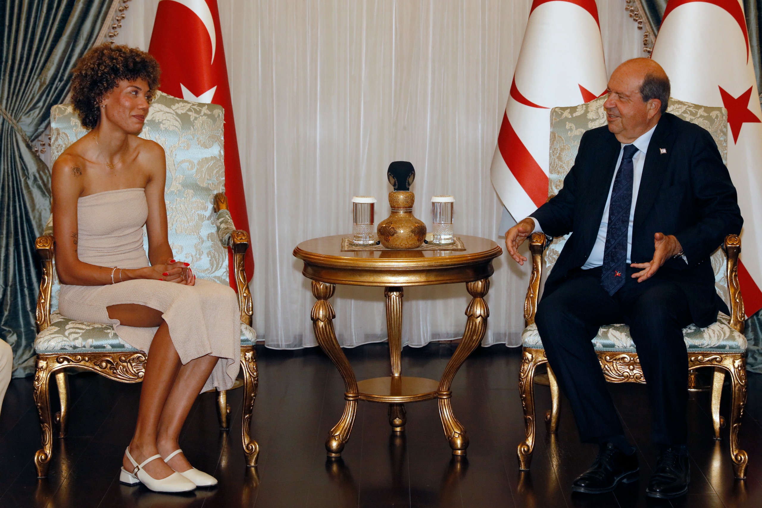 yarışan Kıbrıslı Türk sporcu Buse Savaşkan’ı kabul etti.