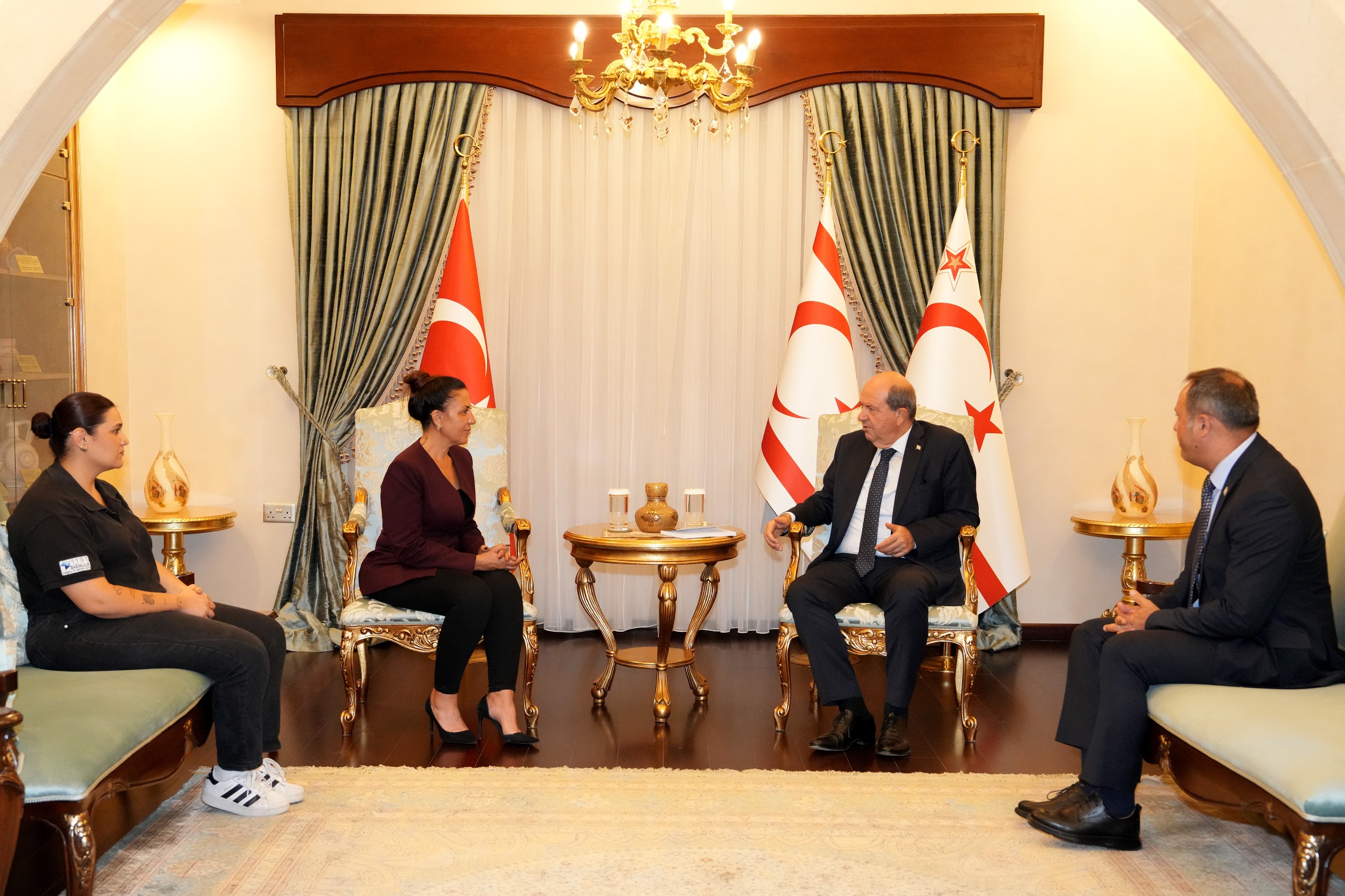 Lefkoşa, 3 Ekim 24 (TAK): Cumhurbaşkanı Ersin Tatar, Başbakanlık Uyuşturucu ile Mücadele Komisyonu Başkanı Teyfide Tecel Hatipoğlu ve üyelerini kabul etti.