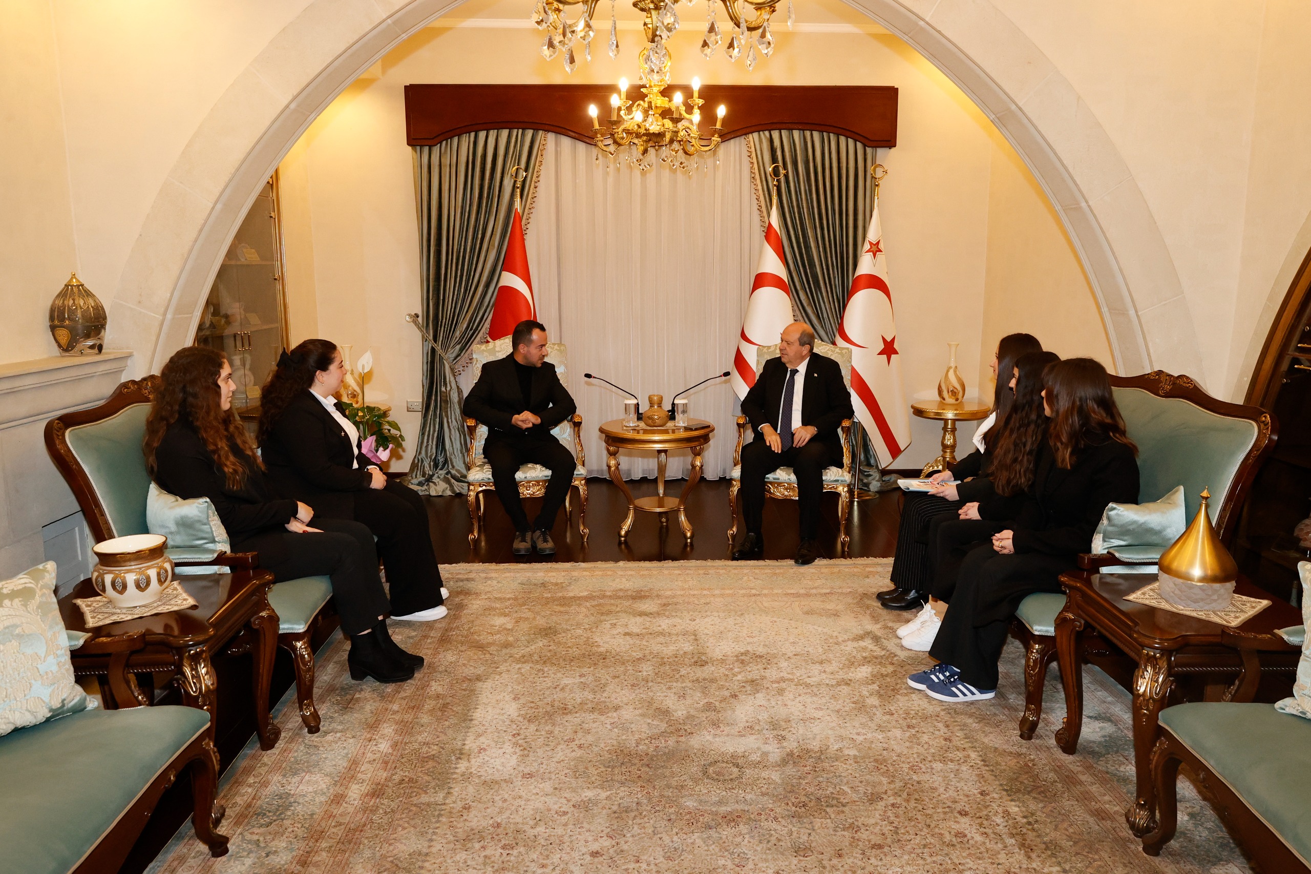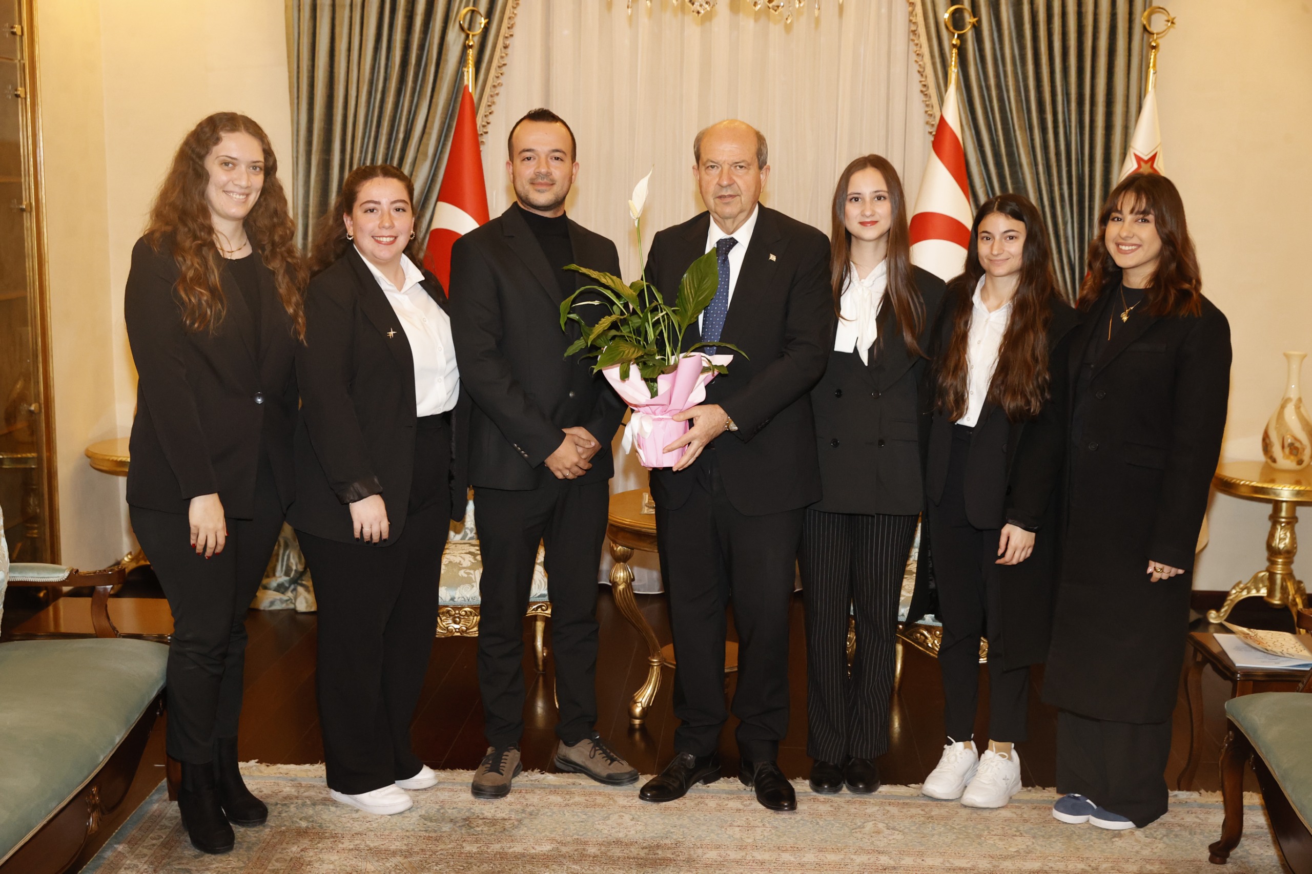 Lefkoşa, 3 Ocak 25 (TAK): Cumhurbaşkanı Ersin Tatar, Atatürk Öğretmen Akademisi öğrencilerini kabul etti.