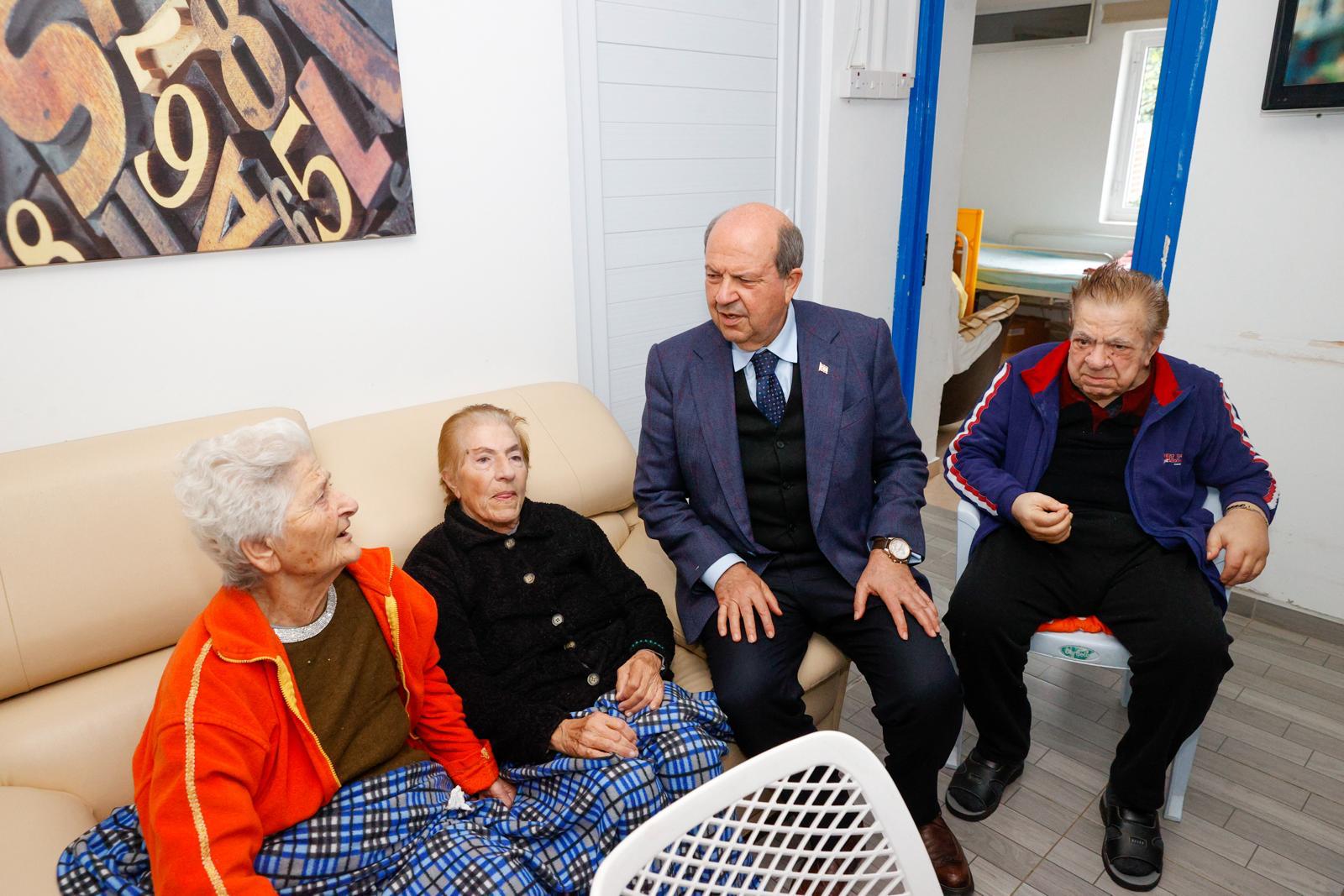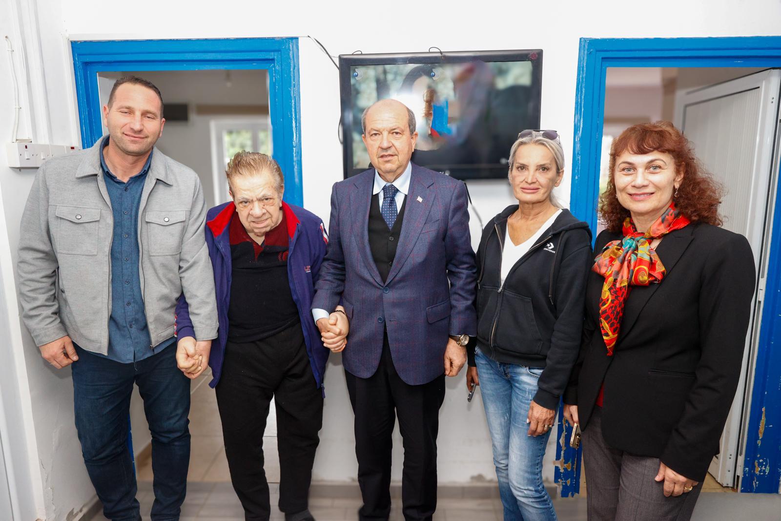 Cumhurbaşkanlığından verilen bilgiye göre, yerleştirildiği Ay Işığı Bakım Evi’nde Şaban Disko ile görüşen Cumhurbaşkanı Tatar, bakım evindeki diğer yaşlılarla da sohbet etti.