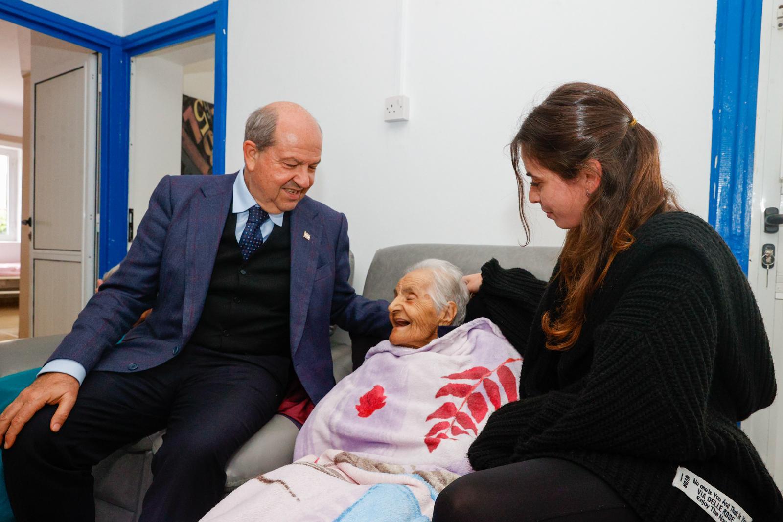 Lefkoşa, 18 Şubat 24 (TAK): Cumhurbaşkanı Ersin Tatar, geçtiğimiz gün kaldığı yaşlı bakım evinde darp edilen 100 yaşındaki Şaban Disko isimli vatandaşı ziyaret etti.