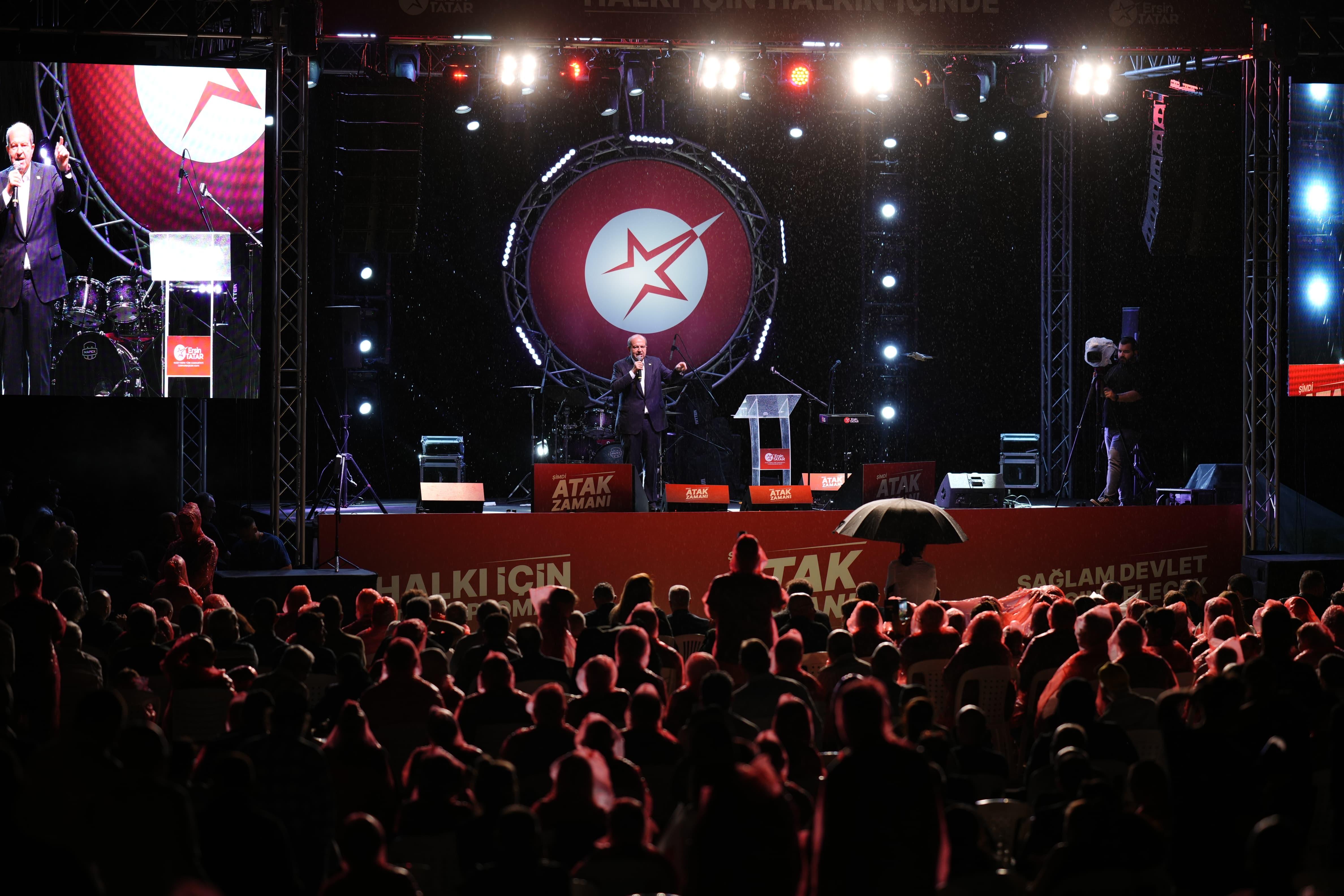Lefkoşa, 9 Ekim 25 (TAK): Cumhurbaşkanı ve Bağımsız Cumhurbaşkanı Adayı Ersin Tatar, dün akşam Lefke’de miting düzenledi.