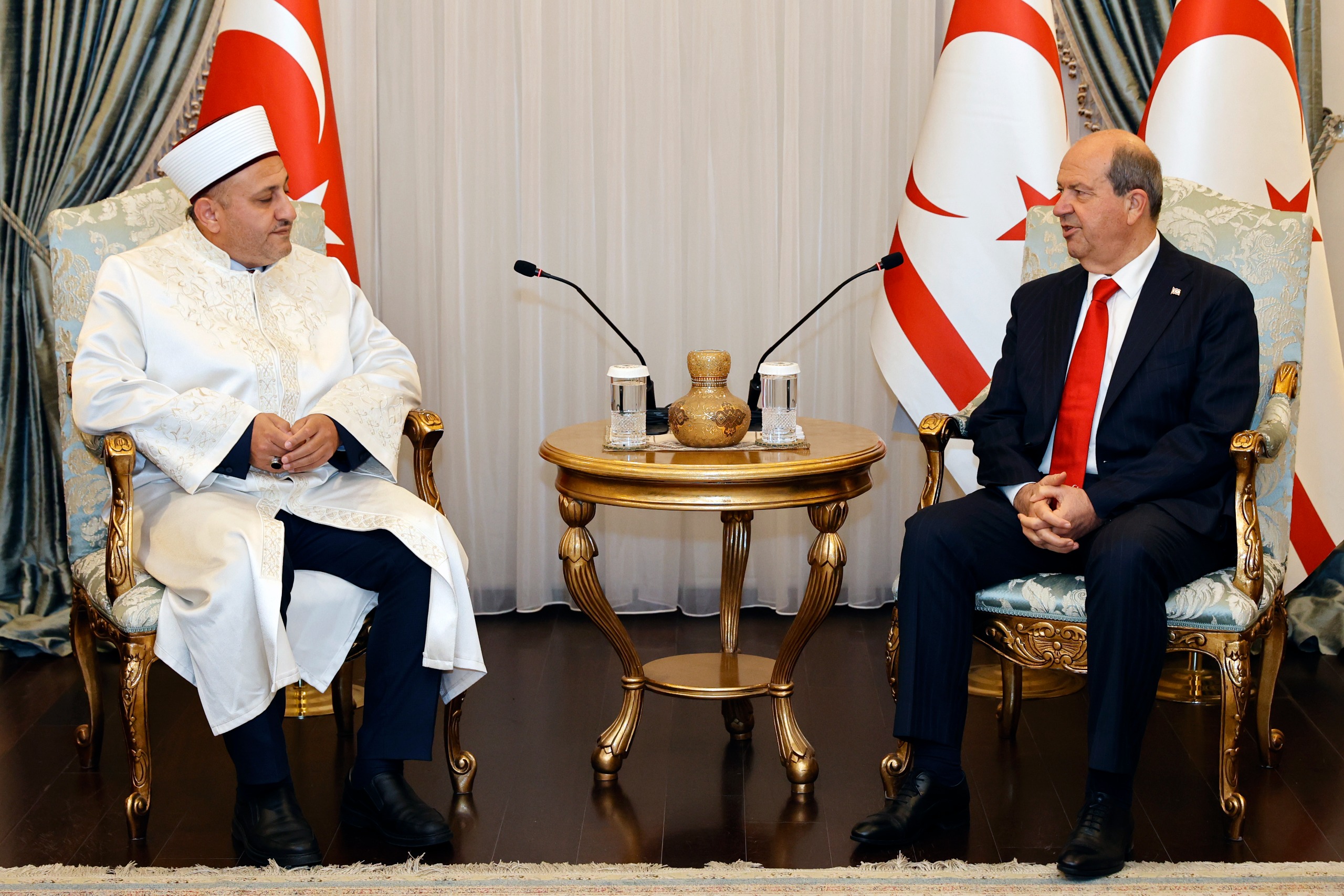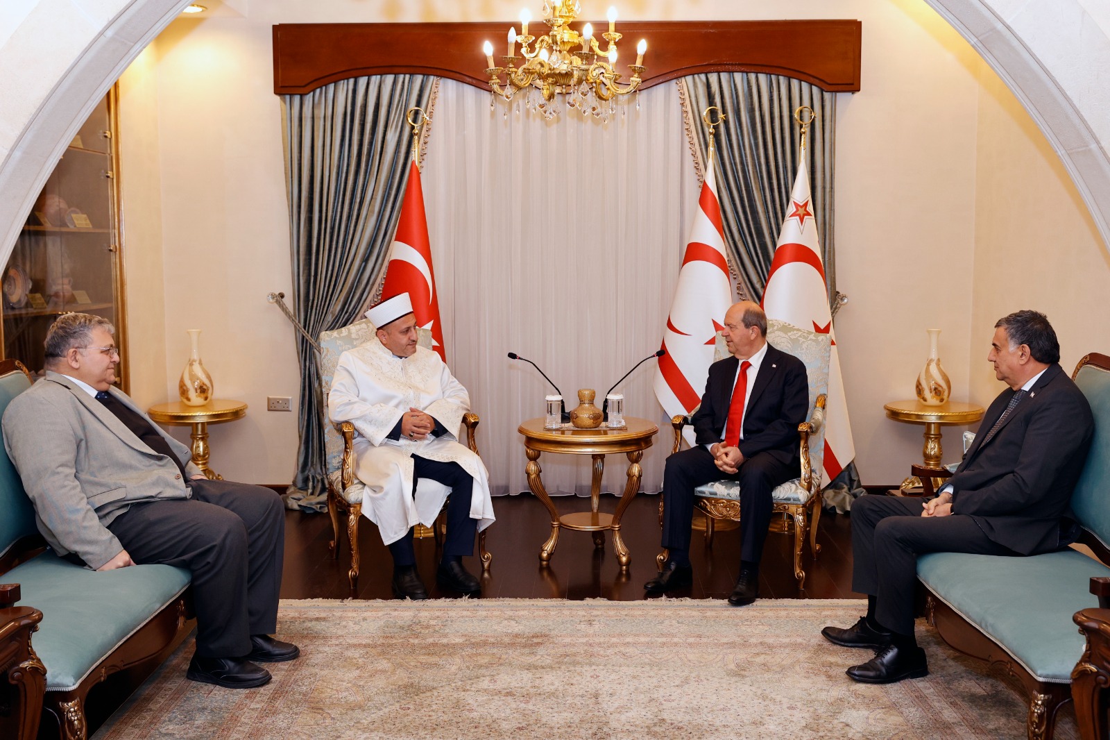 Lefkoşa, 10 Şubat 25 (TAK): Cumhurbaşkanı Ersin Tatar, Din İşleri Başkanı Hakan Moral ve Vakıflar İdaresi Genel Müdürü Prof. Dr. Mustafa Tümer’i kabul etti.