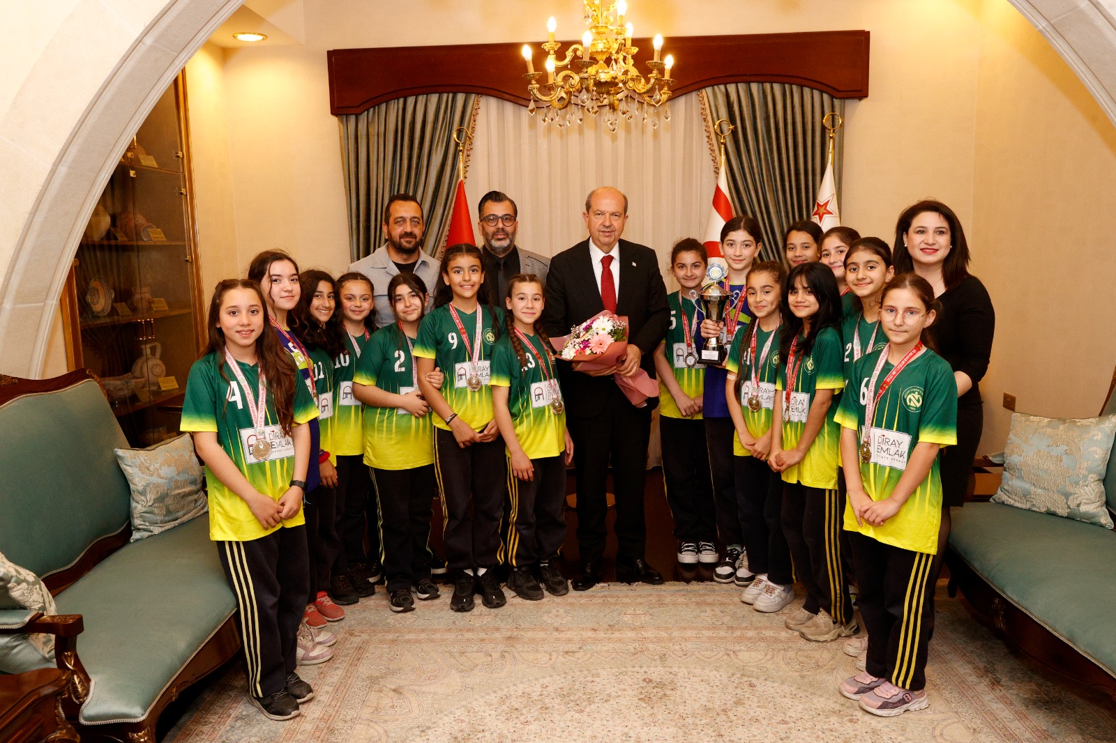 Lefkoşa, 19 Mart 24 (TAK): Cumhurbaşkanı Ersin Tatar, Necati Taşkın İlkokulu hentbol takımı, okul idaresi ve öğretmenlerini kabul etti