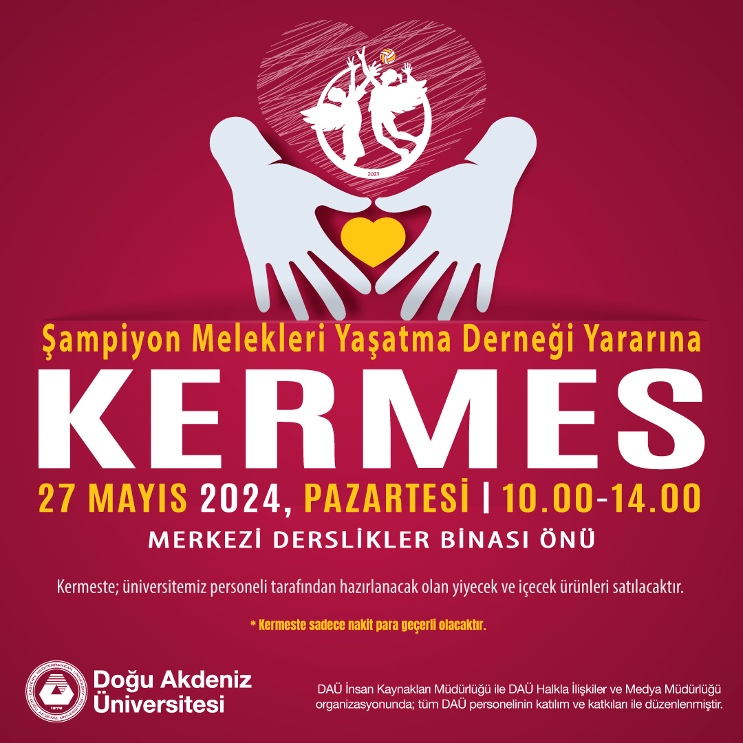 Lefkoşa, 24 Mayıs 24 (TAK): Doğu Akdeniz Üniversitesi (DAÜ), Şampiyon Melekleri Yaşatma Derneği yararına 27 Mayıs Pazartesi günü kermes düzenliyor.
