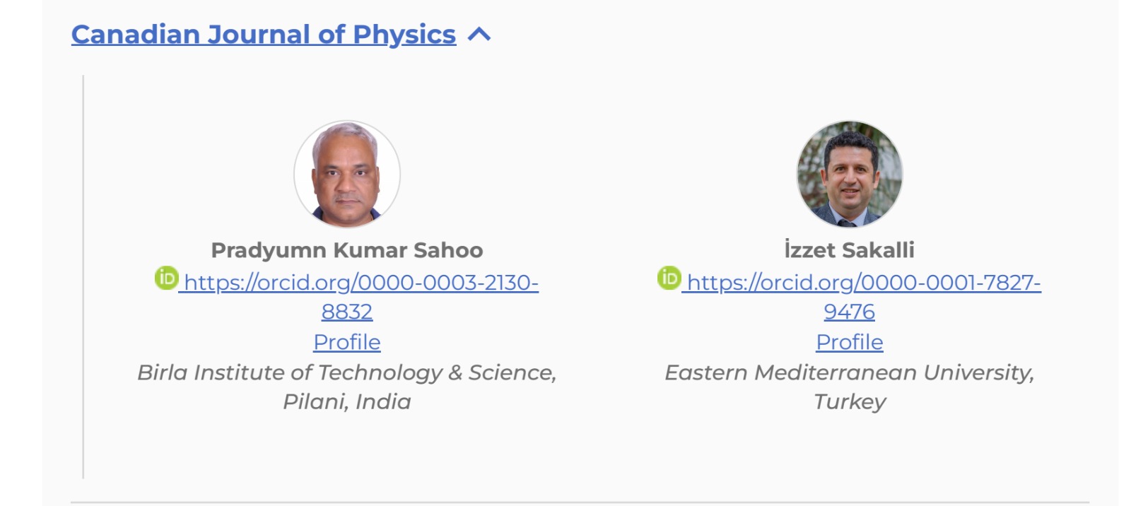 Science” yayınevinin bilimsel dergilerinden “Canadian Journal of Physics” (CJP)