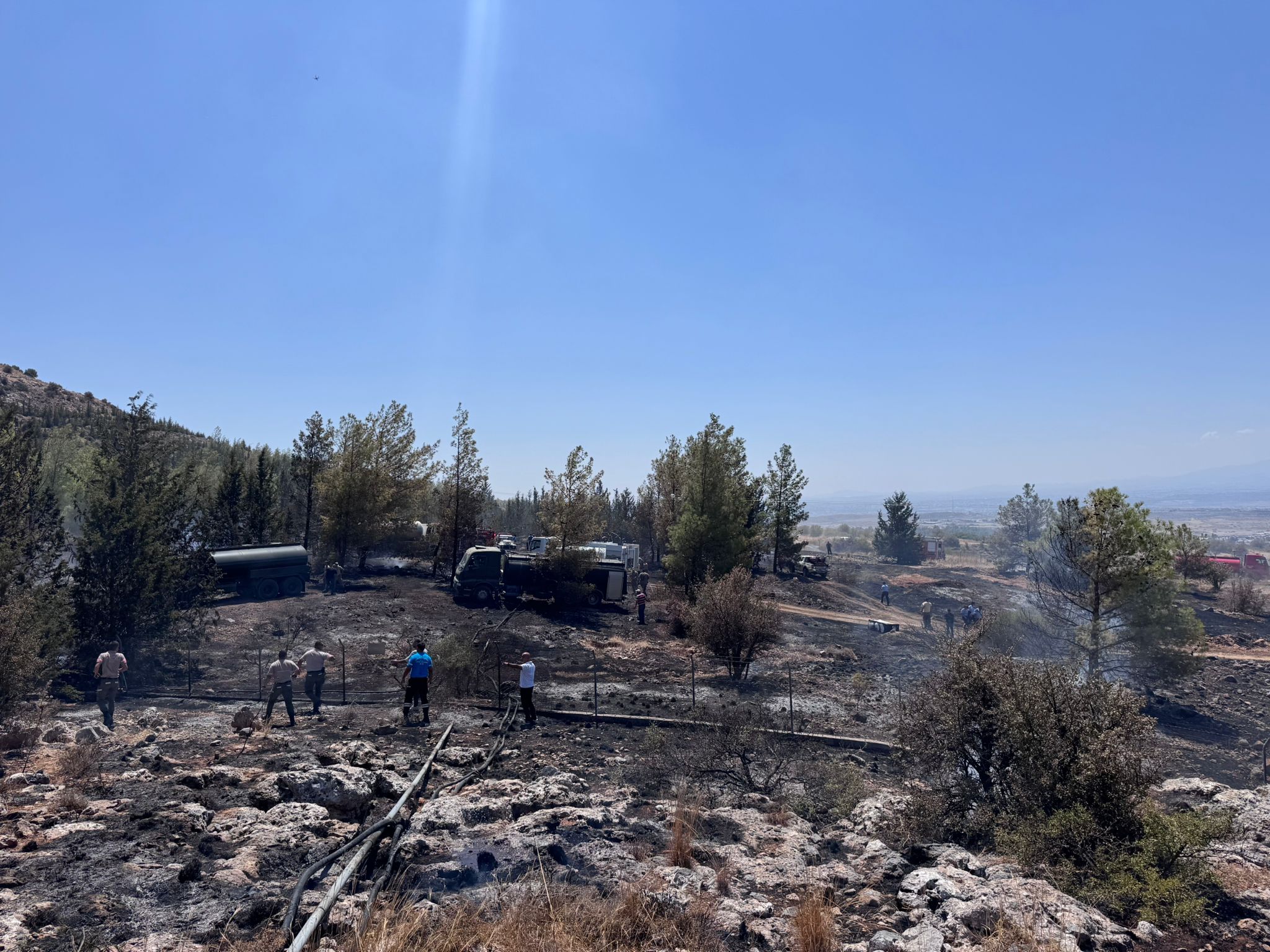 yangında; kuru otlar, bitki örtüsü ve çam ağaçları yandı.