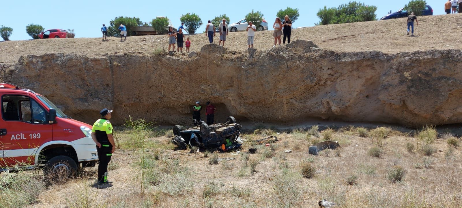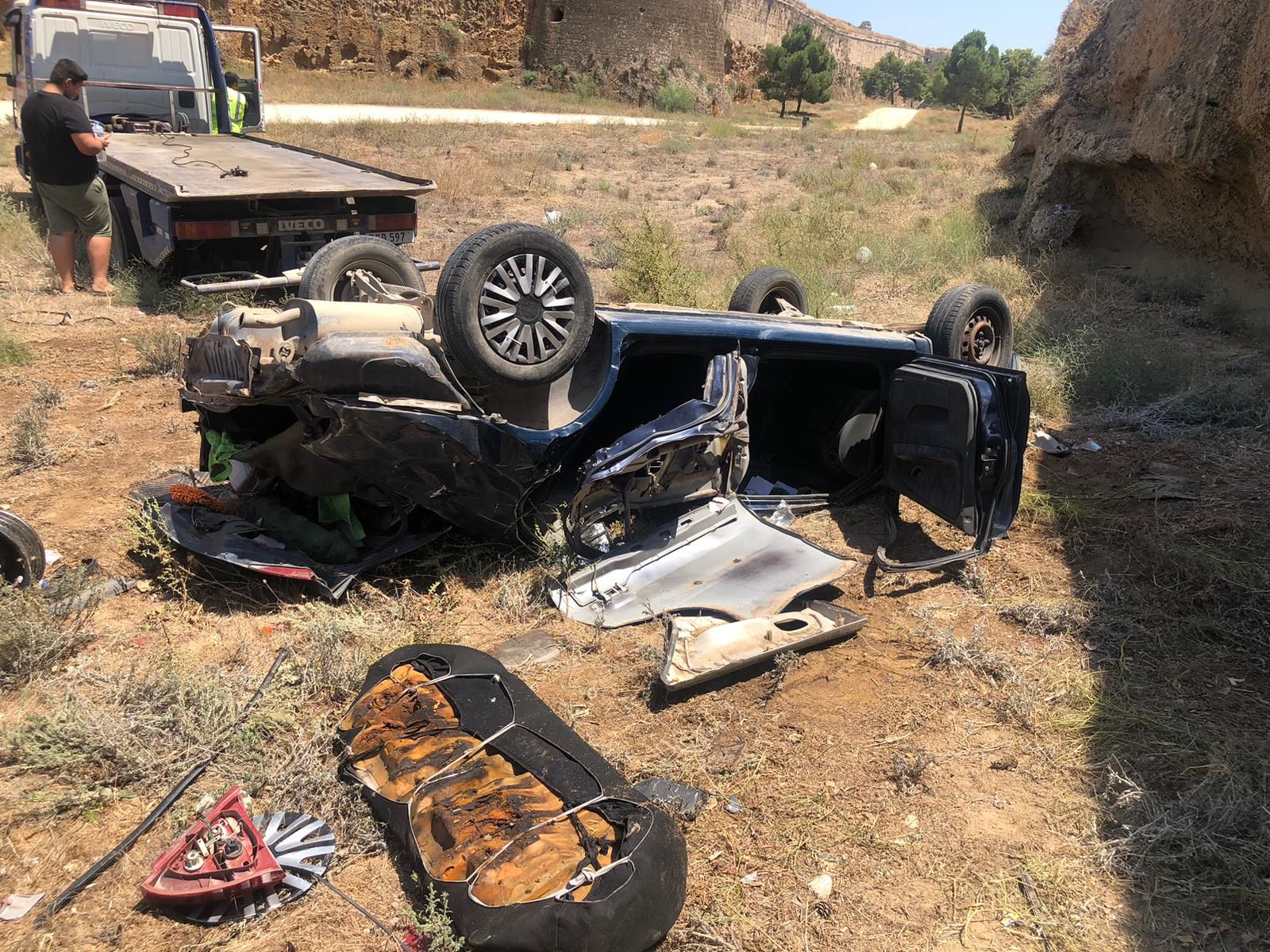 yükseklikten hendeğe tavanı üzerine düştü. Kazada yaralanan iki kişi, hastaneye