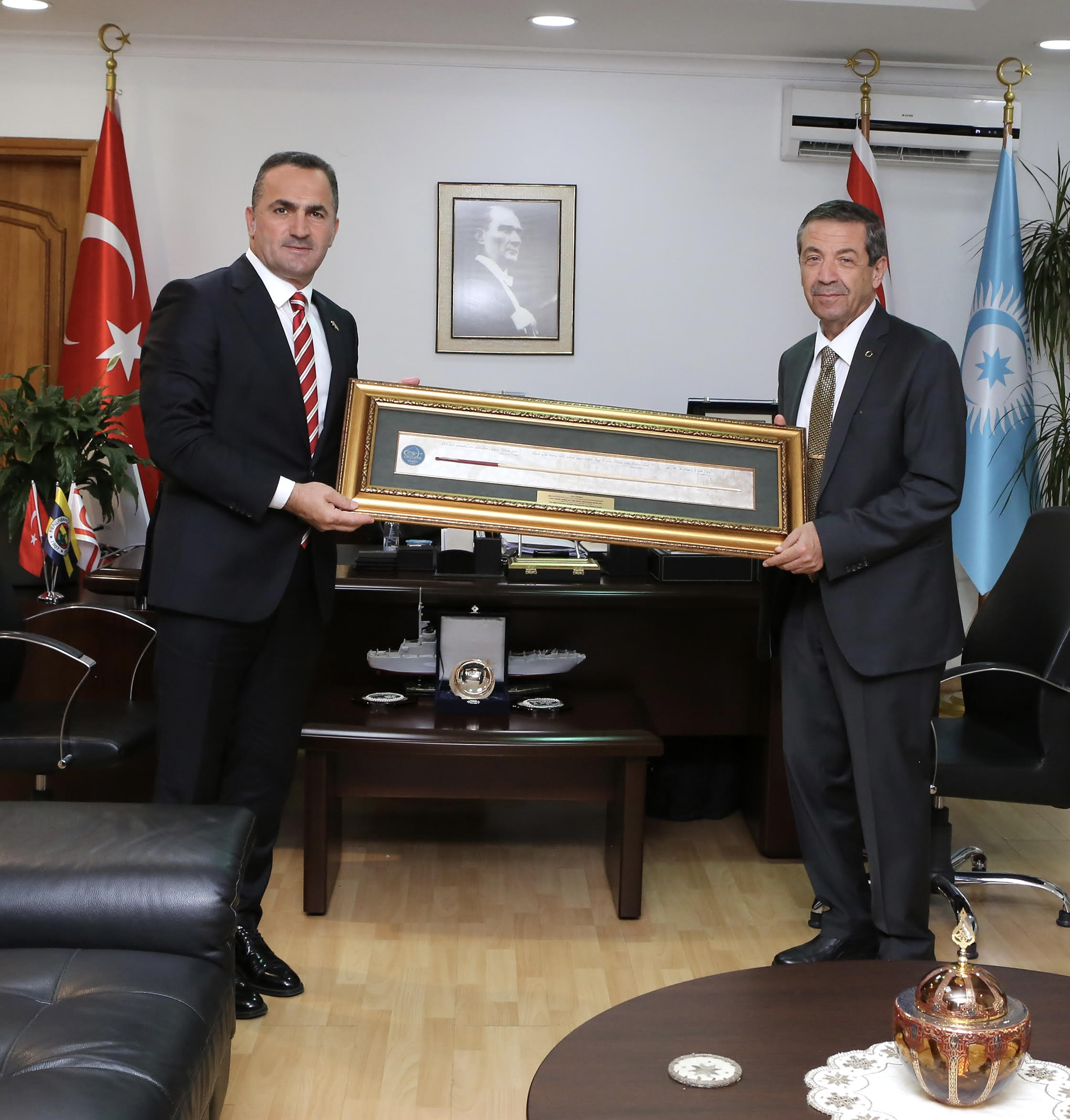 Lefkoşa, 17 Temmuz 23 (TAK): Dışişleri Bakanı Tahsin Ertuğruloğlu, Beyoğlu Belediye Başkanı ve Okçular Vakfı Başkanı Haydar Ali Yıldız’ı kabul etti.