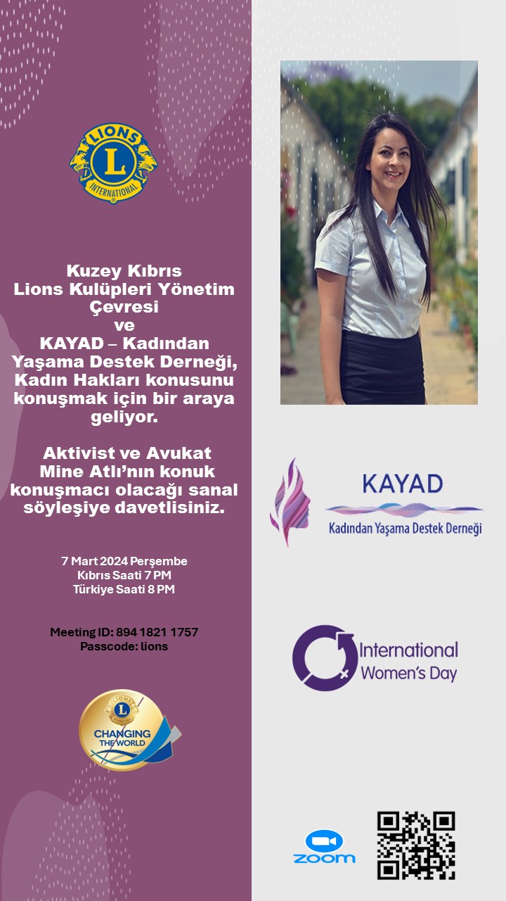 kadın çalışmaları konulu sosyal farkındalık temalı sanal söyleşide Kadından Yaşama Destek Derneği (KAYAD) aktivisti ve avukat Mine Atlı'yı misafir edecek.