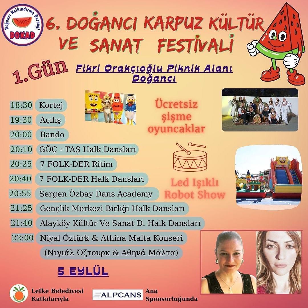 Lefkoşa, 5 Eylül 23 (TAK): 6. Doğancı Karpuz Kültür ve Sanat Festivali bu akşam başlıyor.