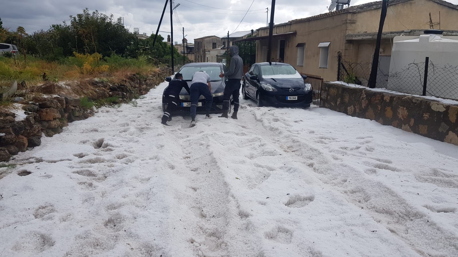 Lefkoşa, 28 Nisan 23 (TAK): Ülke genelinde etkili olan yağışlı hava, Esentepe bölgesinde yoğun dolu yağışına yol açtı.