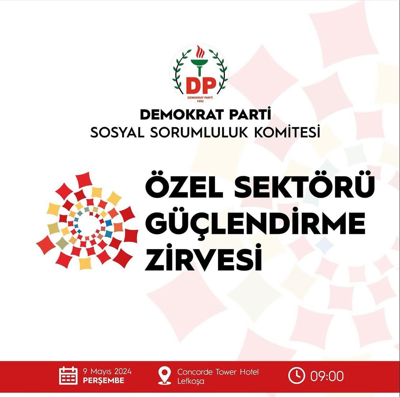 Lefkoşa, 8 Mayıs 24 (TAK): Demokrat Parti (DP), yarın “Özel Sektörü Güçlendirme Zirvesi” düzenliyor.